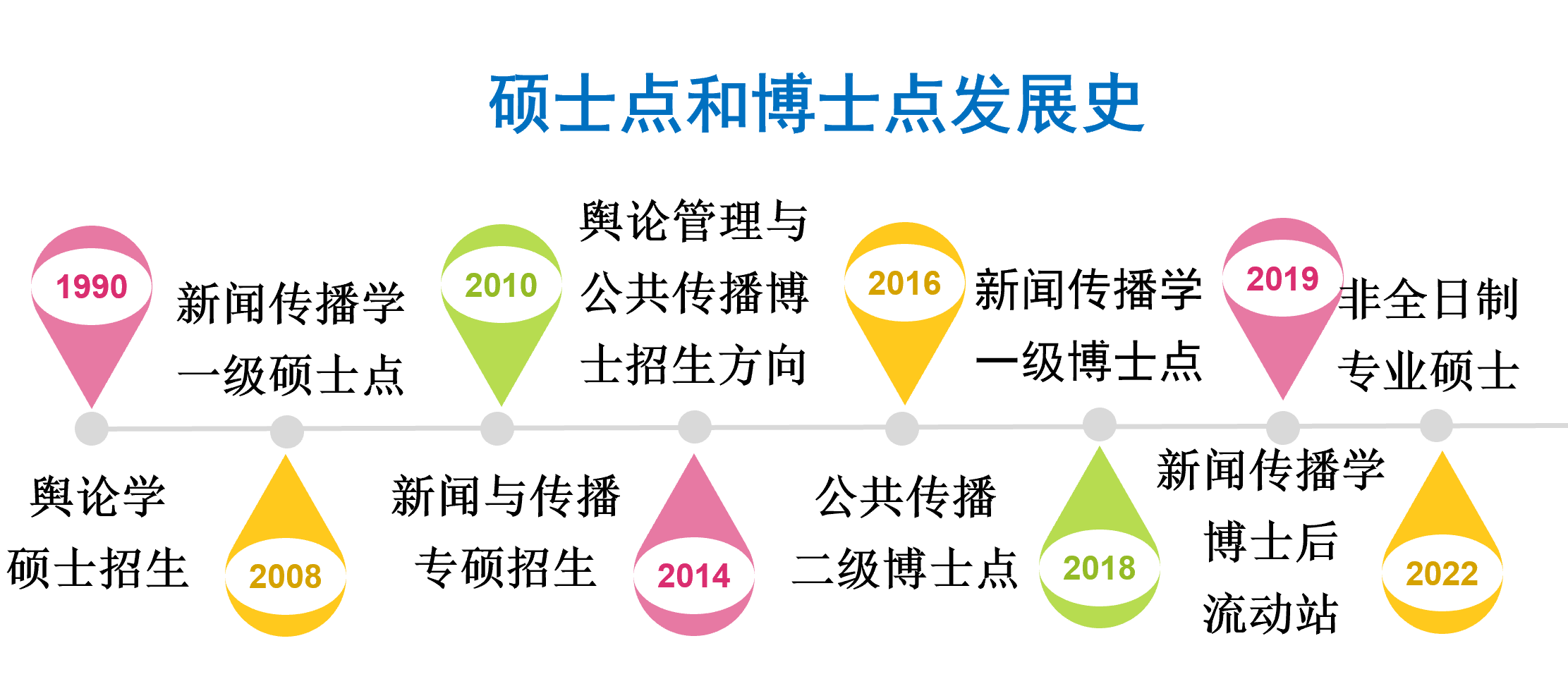 1993年,学院取得新闻学硕士授予权,是国内较早拥有新闻传播学硕士点的单位之一。2008年获批河南省一级重点学科。2014年6月与新华社签订协议共建穆青研究中心,12月中共河南省委宣传部与今年会官网签订了共建新闻传播学院协议。2017年获批第九批河南省重点学科。2018年获批新闻传播学一级学科博士学位授权点。2019年获批新闻传播学一级学科博士后流动站。