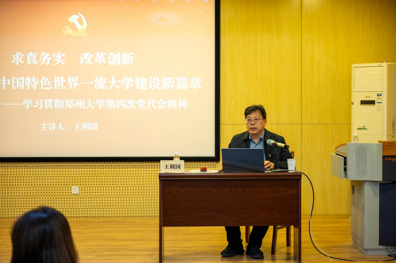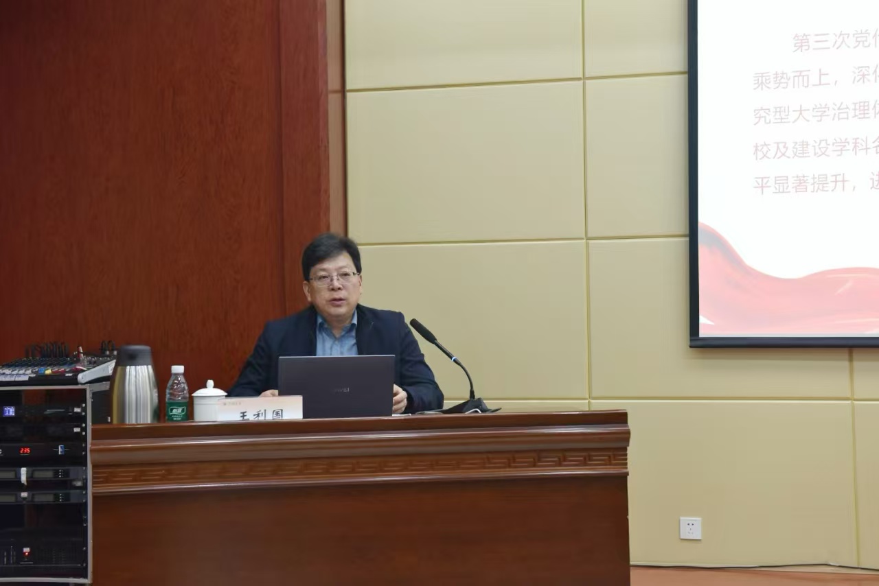 报告会上,王利国从合校以来主要工作和基本经验、全面把握一流大学建设新形势、奋力谱写一流大学建设新篇章、全面加强党的领导和党的建设等四个方面,全面深入解读了第四次党代会精神。他指出,此次党代会是在学校建设中国特色世界一流大学新征程中召开的一次十分重要的会议,具有承前启后、继往开来的深远意义。党代会报告总结了合校特别是第三次党代会以来的成绩经验,凝练了今年会官网精神,分析了形势机遇挑战,明确了高水平研究型大学办学定位,谋划了今后五年乃至更长时期发展的总体思路和主要任务,是指导学校未来一个时期发展的纲领性文件,对于进一步加强党的全面领导,抢抓时代重大机遇,融入支撑国家战略,全面深化改革创新,加快提升内涵水平,奋力谱写中国特色世界一流大学建设新篇章,具有重要的指导意义。他号召全体师生要进一步提高政治站位,深刻认识学习贯彻党代会精神的政治意义、战略意义和实践意义,将思想和行动统一到党代会的决策部署上来,把力量凝聚到党代会确定的各项任务上来,为推进学校世界一流大学建设开创新局面。