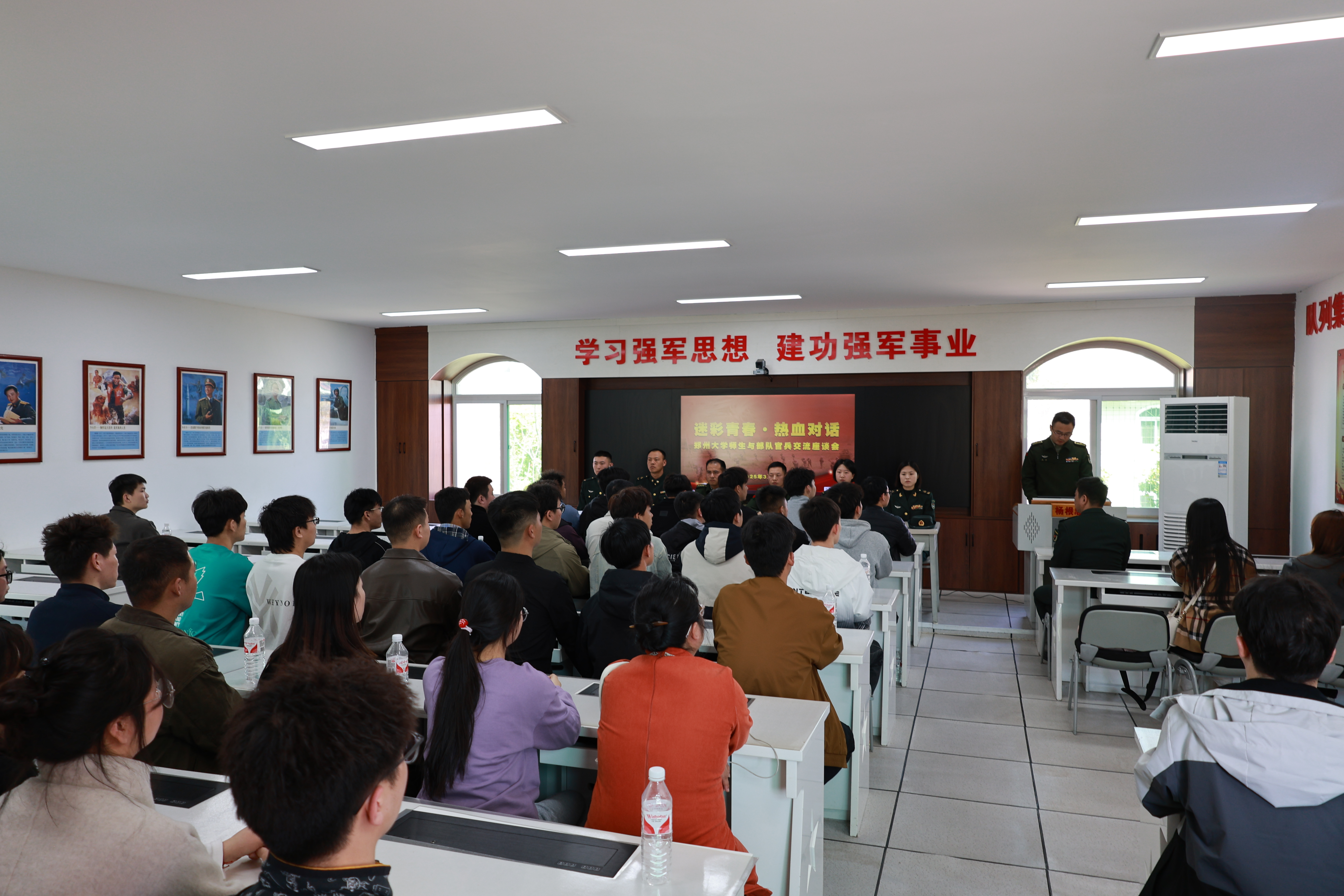 在“迷彩青春·热血对话”座谈会上,7名部队官兵围绕从校园到军营的蜕变,分享那些在训练场上挥洒汗水、在任务中砥砺意志的亲身经历,为同学们勾勒出军营生活的热血轮廓;从个人成长的磨砺,到职业发展的规划,再到价值实现的路径以及政策保障的细节,官兵们用坚定的信念和鲜活的经历,点燃了同学们的参军热情,开启了一场别开生面的征兵动员会。活动结束后,40余名同学怀揣着对国防事业的热忱,踊跃应征报名,立志在绿色军营中书写热血青春。