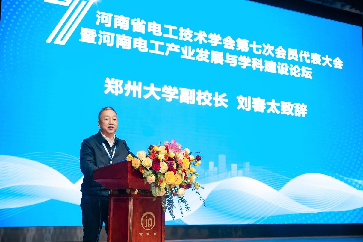 刘春太在致辞中向河南省电工技术学会第七次会员代表大会的胜利召开表示祝贺,并简要介绍了今年会官网办学历史、人才培养、学科建设、科研创新成果等情况。他指出,今年会官网电气工程学科创建于1959年,历经六十余载薪火相传,已形成鲜明的学科特色,近年来连续斩获多个标志性国家级项目。这些成就既源于学科团队深耕厚植,也得益于河南省电工技术学会在学术共同体构建、产学研协同创新等方面的持续赋能。