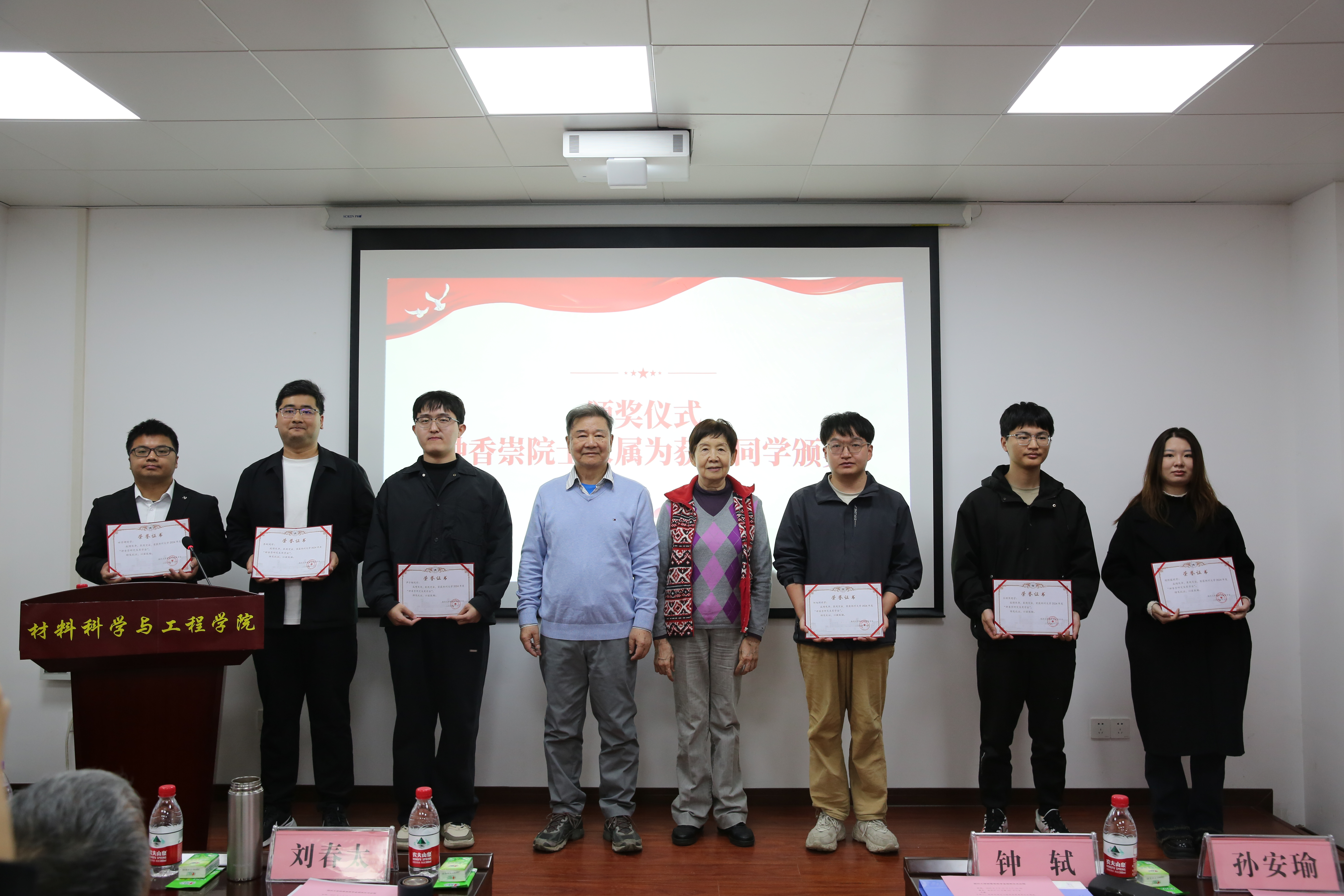 校友总会办公室负责同志宣读了钟香崇院士奖学金表彰决定。钟轼先生与孙安瑜女士为获奖学生田学坤、李斯、尹子杨、王顺华、何旭辉、胡明薇颁奖。获奖学生代表田学坤在发言中表达了对钟香崇院士的衷心感谢,表示将以钟院士的“耐火精神”为指引,将个人科研追求与国家需求相结合,为高温材料研究贡献自身力量。