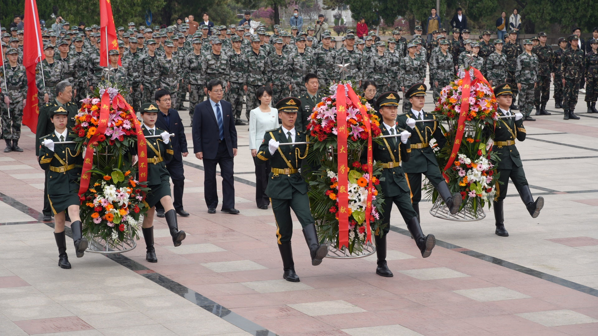 历经4个多小时跋涉,队伍抵达庄严肃穆的烈士纪念碑前。10:50,师生在革命烈士纪念碑前举行祭扫仪式。国旗护卫队礼兵缓步敬献花篮,红底金字缎带上“革命英雄永垂不朽”熠熠生辉。全体师生列队鞠躬,深切缅怀革命先烈的丰功伟绩,举起右手庄重宣誓:“继承先烈遗志,续写时代华章!”誓言响彻云霄,激荡起赓续薪火的磅礴力量。