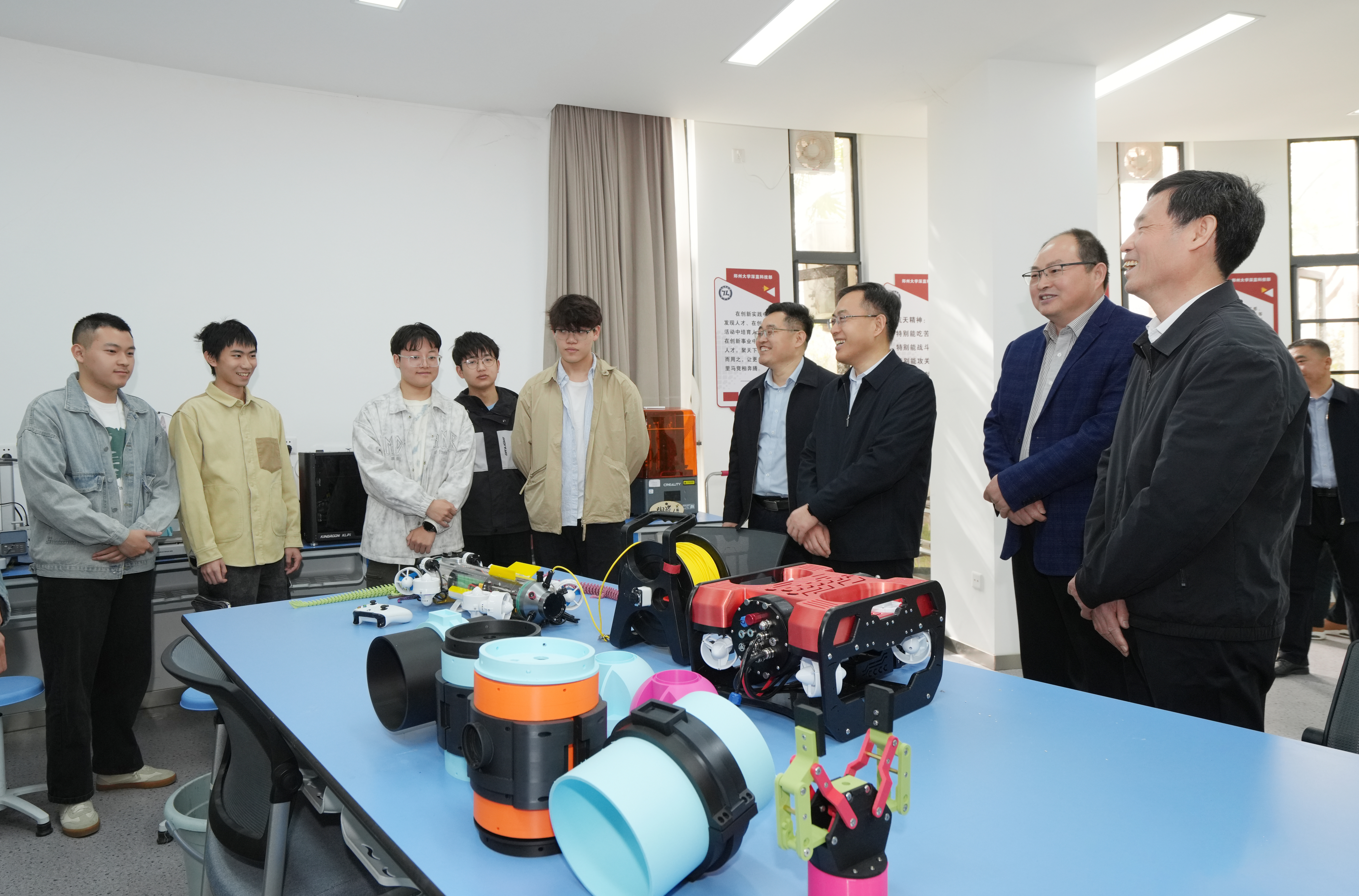 在中原关键金属实验室、河南省金刚石光电材料与器件重点实验室、橡塑模具国家工程研究中心、天健先进生物医学实验室等科研平台,李成伟与科研人员深入交谈,细致了解研发成果、应用前景、人才引育等情况,对重大原始创新、卡脖子技术攻关等领域取得成就充分肯定,勉励大家聚焦国家重大战略需求,凝练科研方向、强化有组织科研,在重大成果、重大人才项目上取得新突破。他表示,要打通科技成果转化渠道,通过设立科创基金,构建科创“生态雨林”,推动更多创新成果落地转化,持续催生新质生产力。