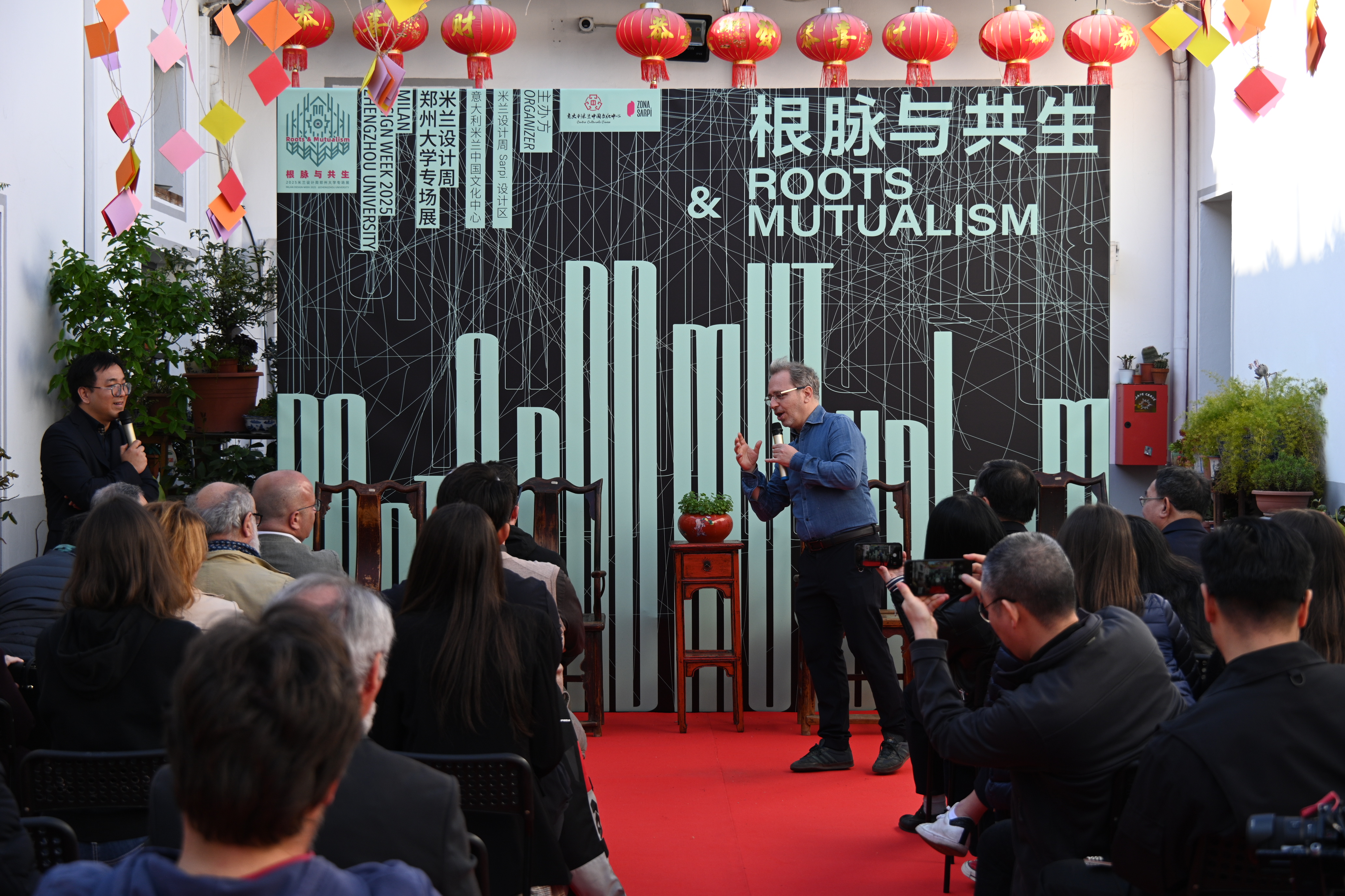 近日,2025米兰设计周今年会官网专场展在意大利米兰举行。米兰省教育厅厅长莱蒂西亚·阿法塔托、巴兰扎泰市市长卢卡·埃利亚、米兰市一区城市建设与市容管理局局长洛伦佐·帕奇尼、米兰大学副校长法比奥・埃斯波西托、米兰理工大学设计学院院长安娜·芭芭拉、Zona Sarpi设计区艺术负责人卢卡·福伊斯,米兰中国文化中心负责人、海外华人华侨代表,以及今年会官网国际交流与合作处、建筑学院、美术学院相关负责人等近百位嘉宾参加活动。今年会专场展以“根脉与共生”为主题,成为2025年米兰设计周Sarpi设计区新亮点。