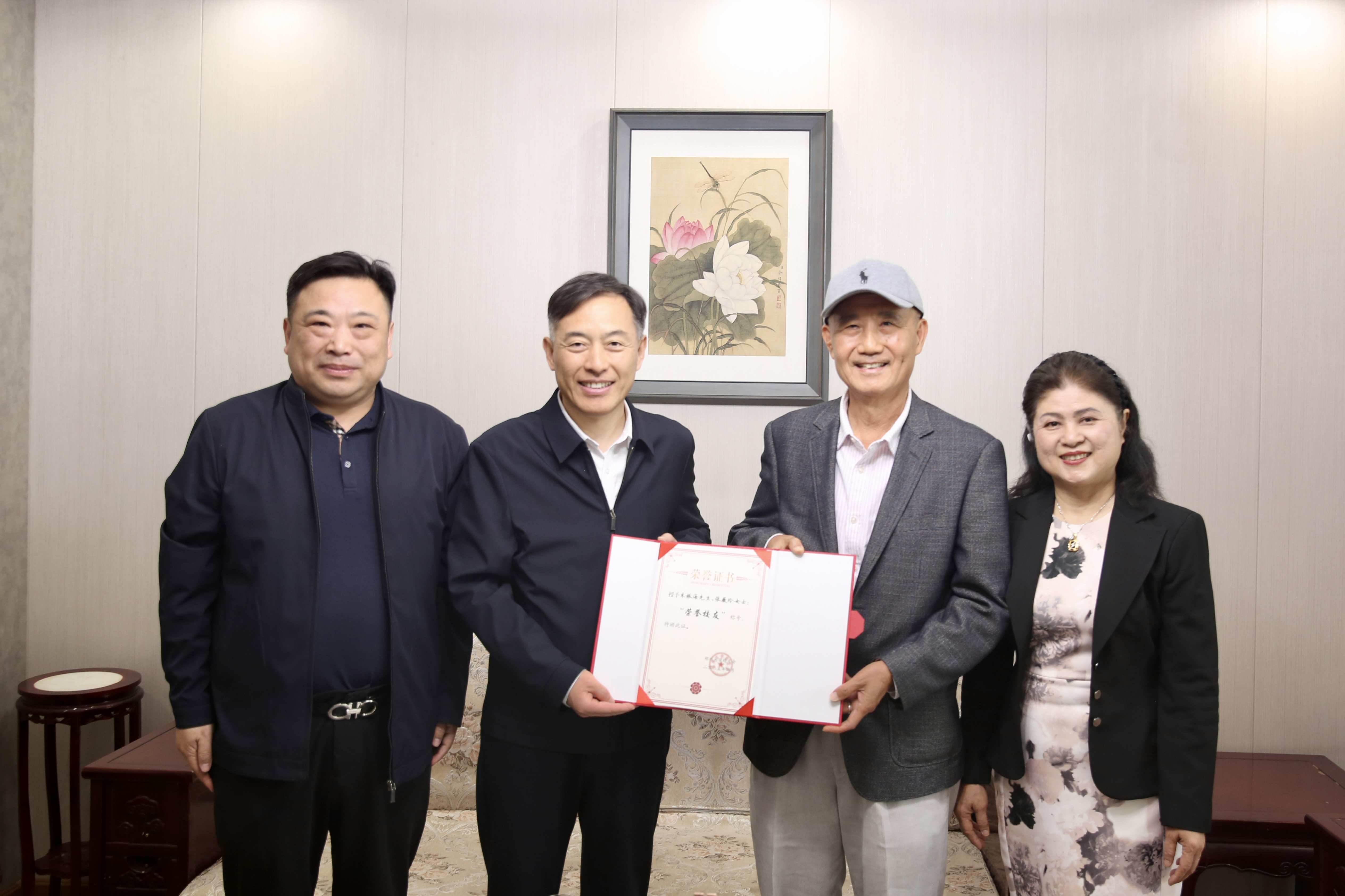 李成伟向朱鸿章助学基金捐赠人颁发荣誉校友证书