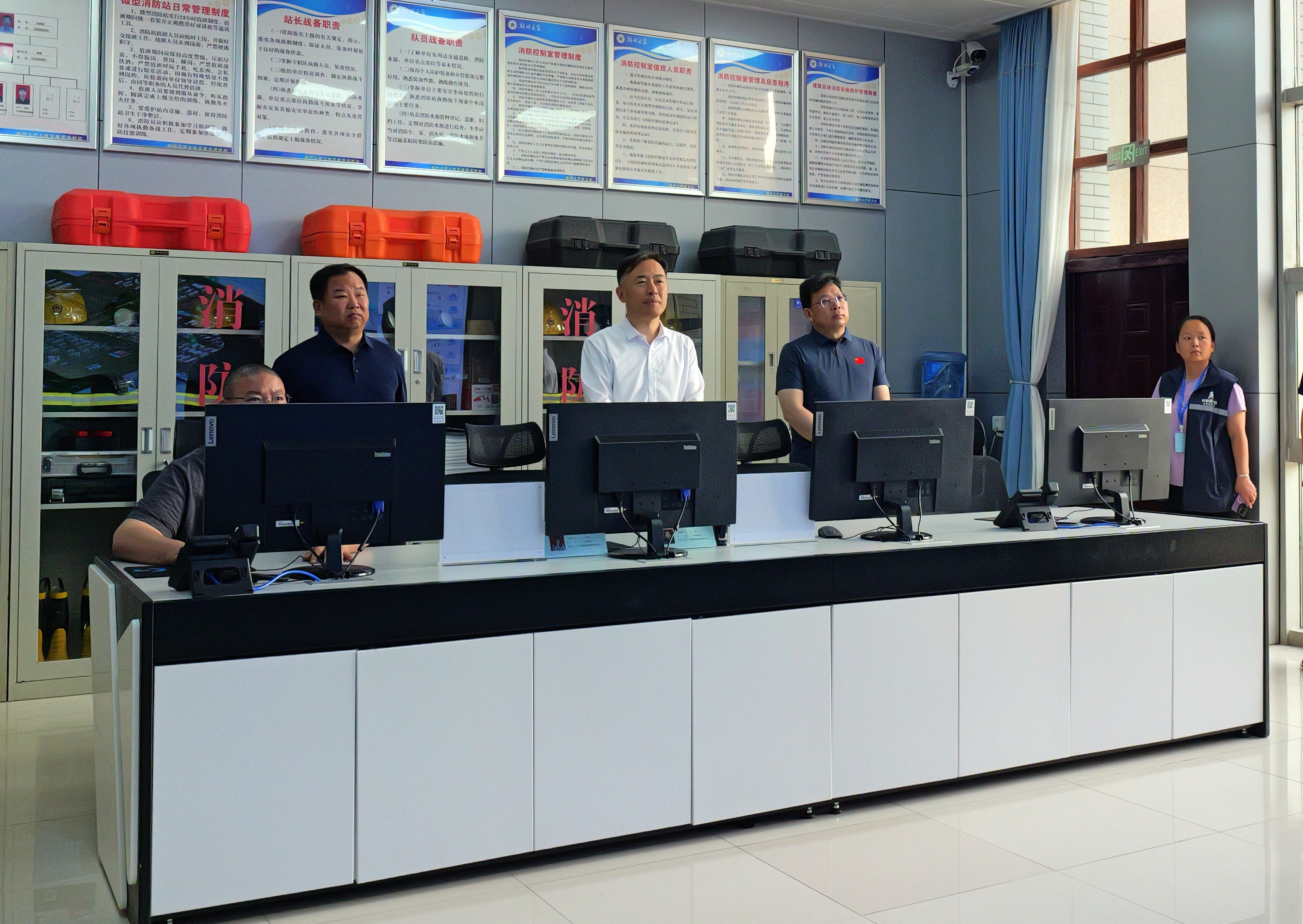 在主校区微型消防站,李成伟一行详细听取安消一体化平台功能汇报,查看消防设施配置与运行情况。他强调,要立足学校实际需求,持续深化消防、交通一体化建设,统筹推进校园交通整体优化,打造兼具功能性与文化特色的校园道路,提升基础服务保障能力,营造安全、便捷、舒适的校园环境。