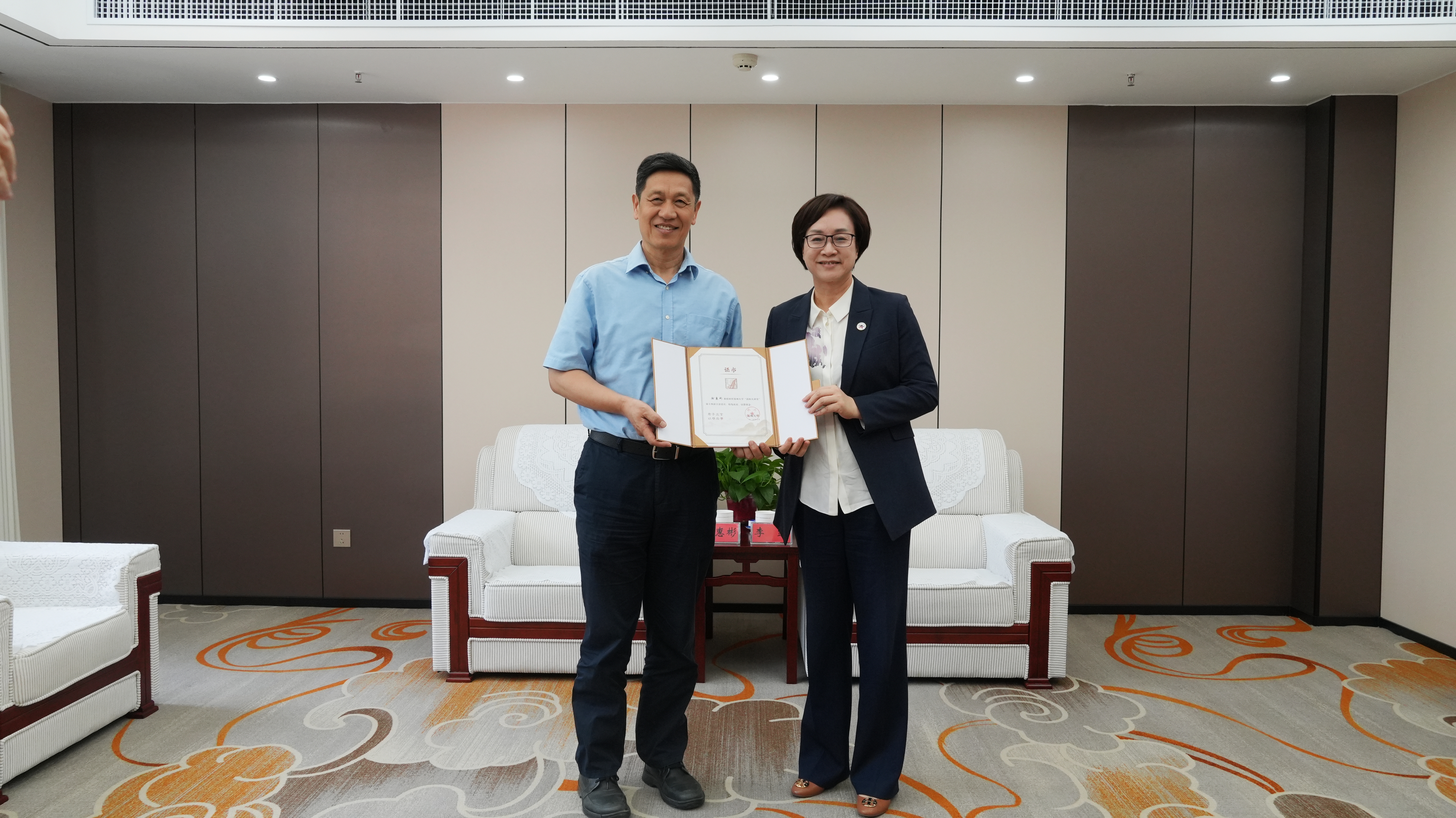 报告会前,校长李蓬院士为金属材料专家、中国工程院院士徐惠彬颁发“嵩阳大讲堂”主讲嘉宾证书。