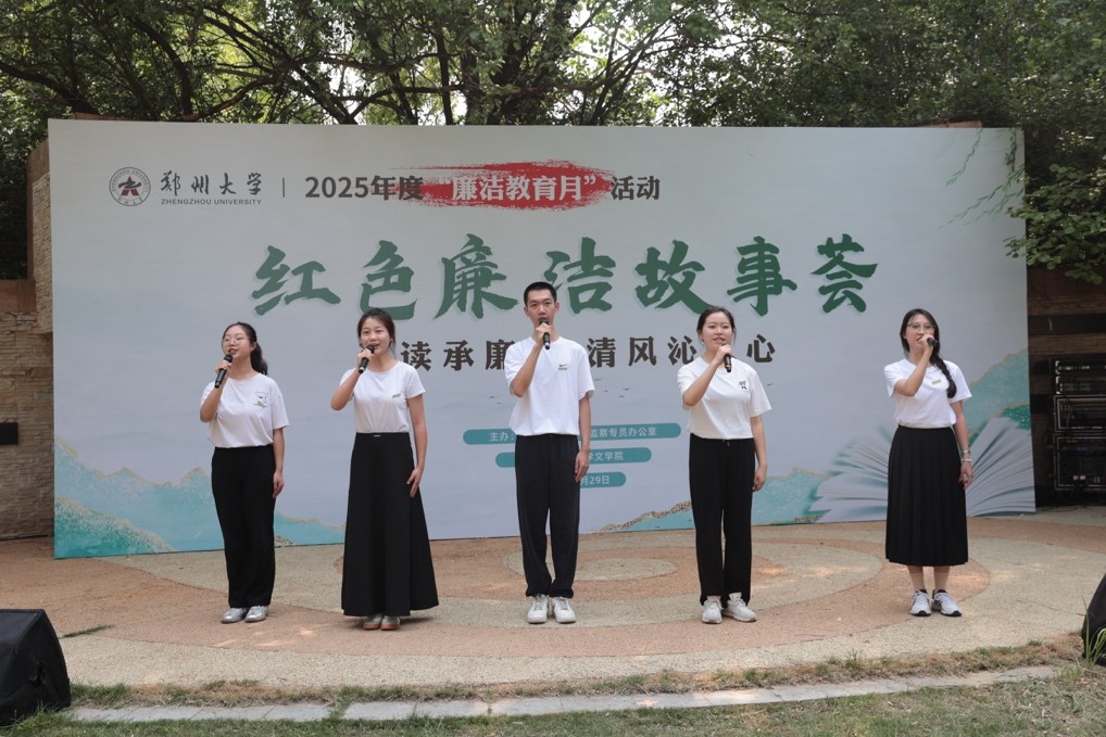 活动期间,文学院红色故事宣讲团学生带来多篇(首)原创作品,通过诗词朗诵、散文演绎、历史故事讲述等形式生动诠释廉洁内涵。本科生陈星宇创作的作品《忠贞不渝郭元礼,廉洁身正定乾坤》,展现了郭元礼“秉公执法如利剑,心怀百姓似春阳”的赤子初心;《廉洁诗词联诵》作品带领观众跨越时空,领略古人清正不渝的操守及刚正不阿的气节。基层纪委书记代表朗诵了作品《岳阳楼记》,字句铿锵,展现了立心立行、率先垂范的躬行践履。在诵读分享中,参演人员以饱满的热情、真挚的情感对文学作品进行深情演绎,讲述历史长卷中永不褪色的廉洁清风,表达青年传承“清风正气”的责任担当,彰显新时代廉洁文化建设的磅礴力量。