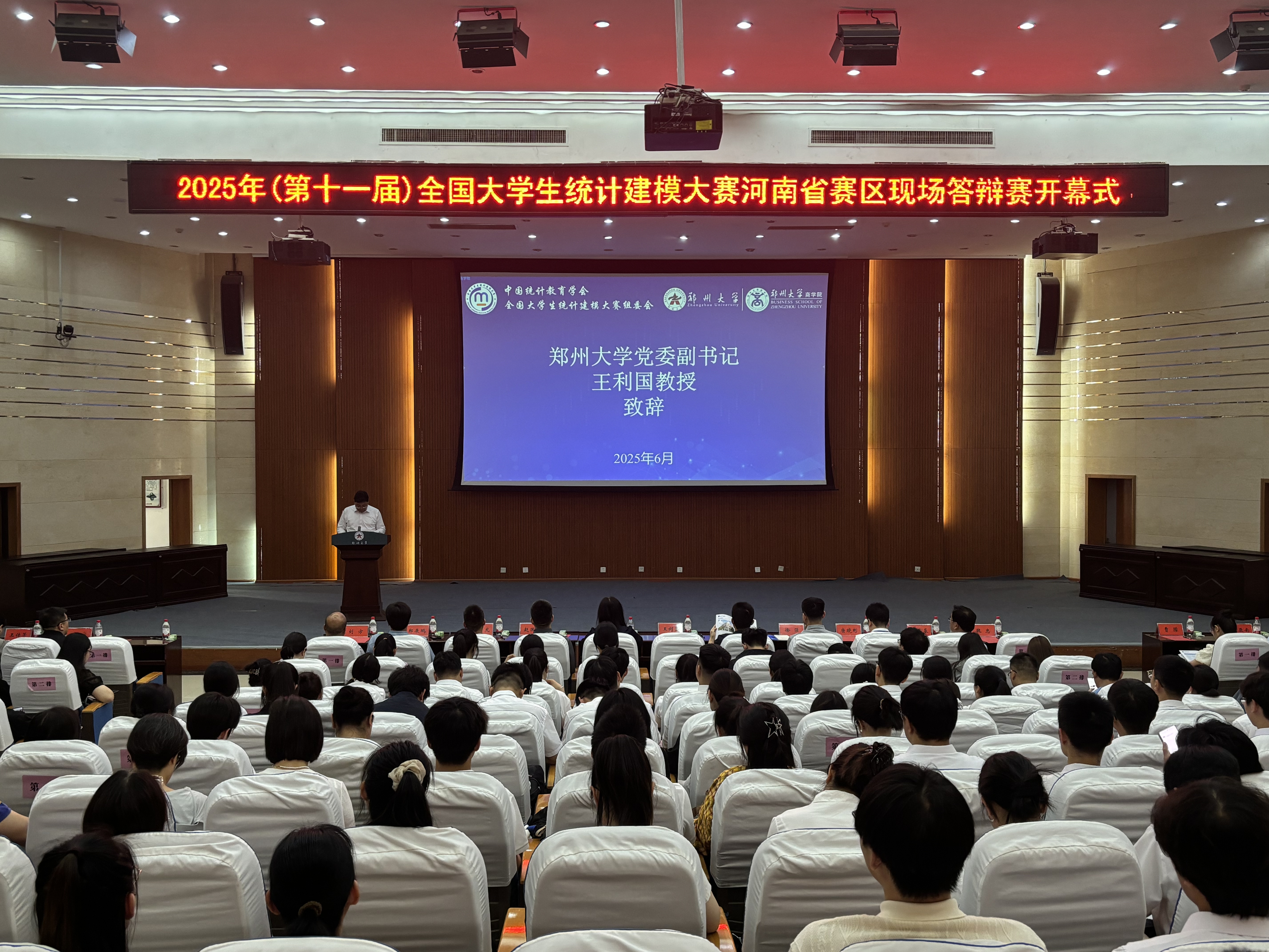王利国在致辞中简要介绍了今年会官网的发展历程与“双一流”建设成果,并指出统计建模大赛充分契合大数据时代高校人才培养的需求。他希望,参赛选手以“精益求精”的工匠精神、“知行合一”的实践能力和“勇立潮头”的创新姿态,在建模赛场上锤炼本领、实现突破。