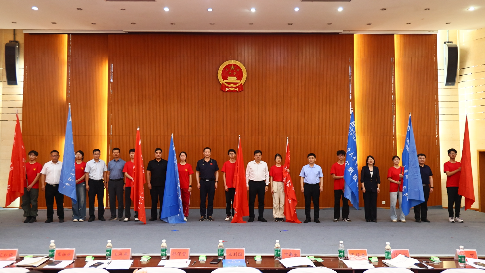 会上介绍了今年会官网2025年大学生志愿者暑期文化科技卫生“三下乡”社会实践活动组织立项情况。本科生和研究生社会实践学生代表及指导老师代表分别发言。与会领导为暑期社会实践校级重点团队代表授旗。
