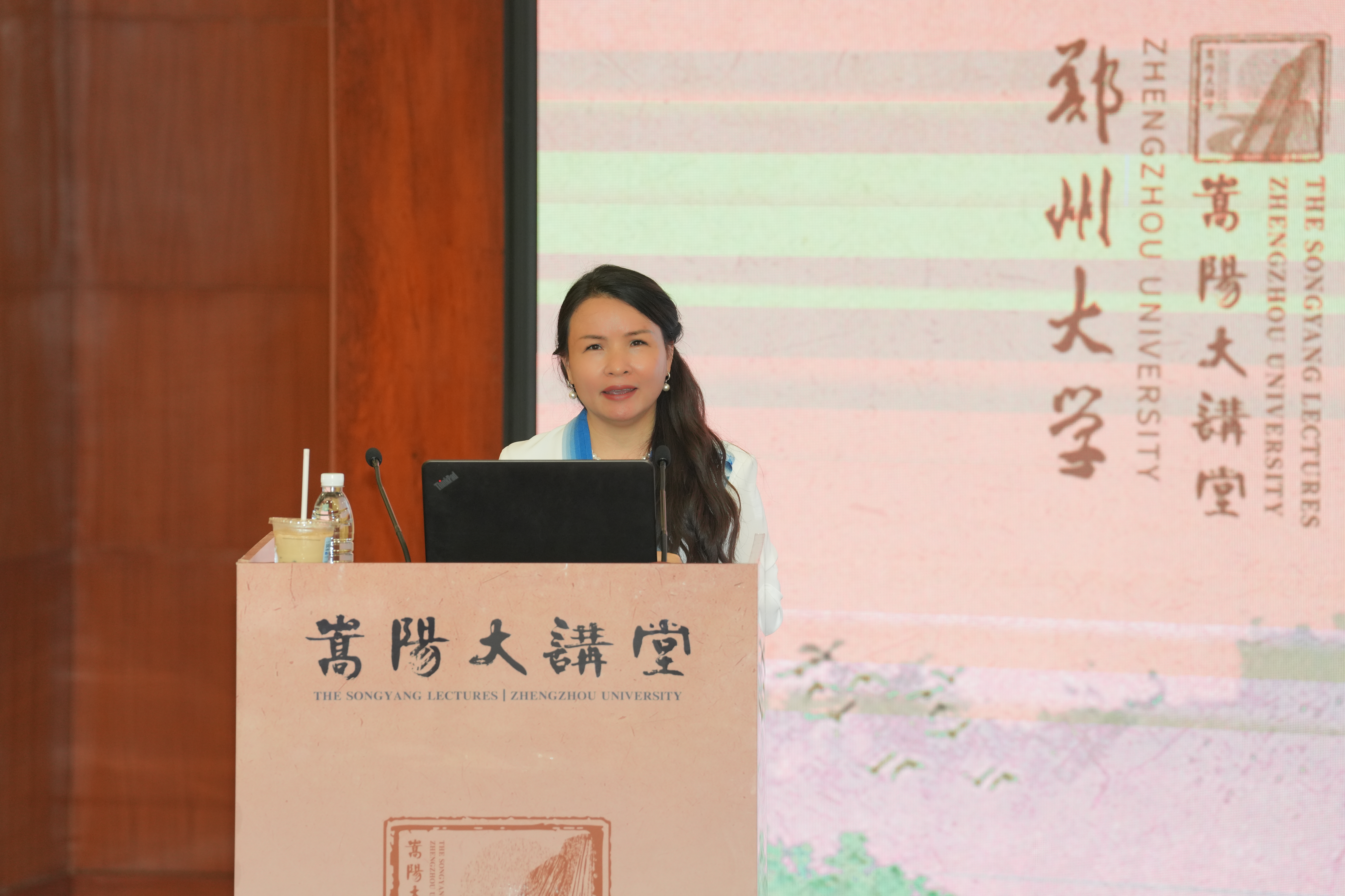 王海杰为公共管理学知名学者、中国人民大学吴玉章讲席教授何艳玲颁发“嵩阳大讲堂”主讲嘉宾证书。