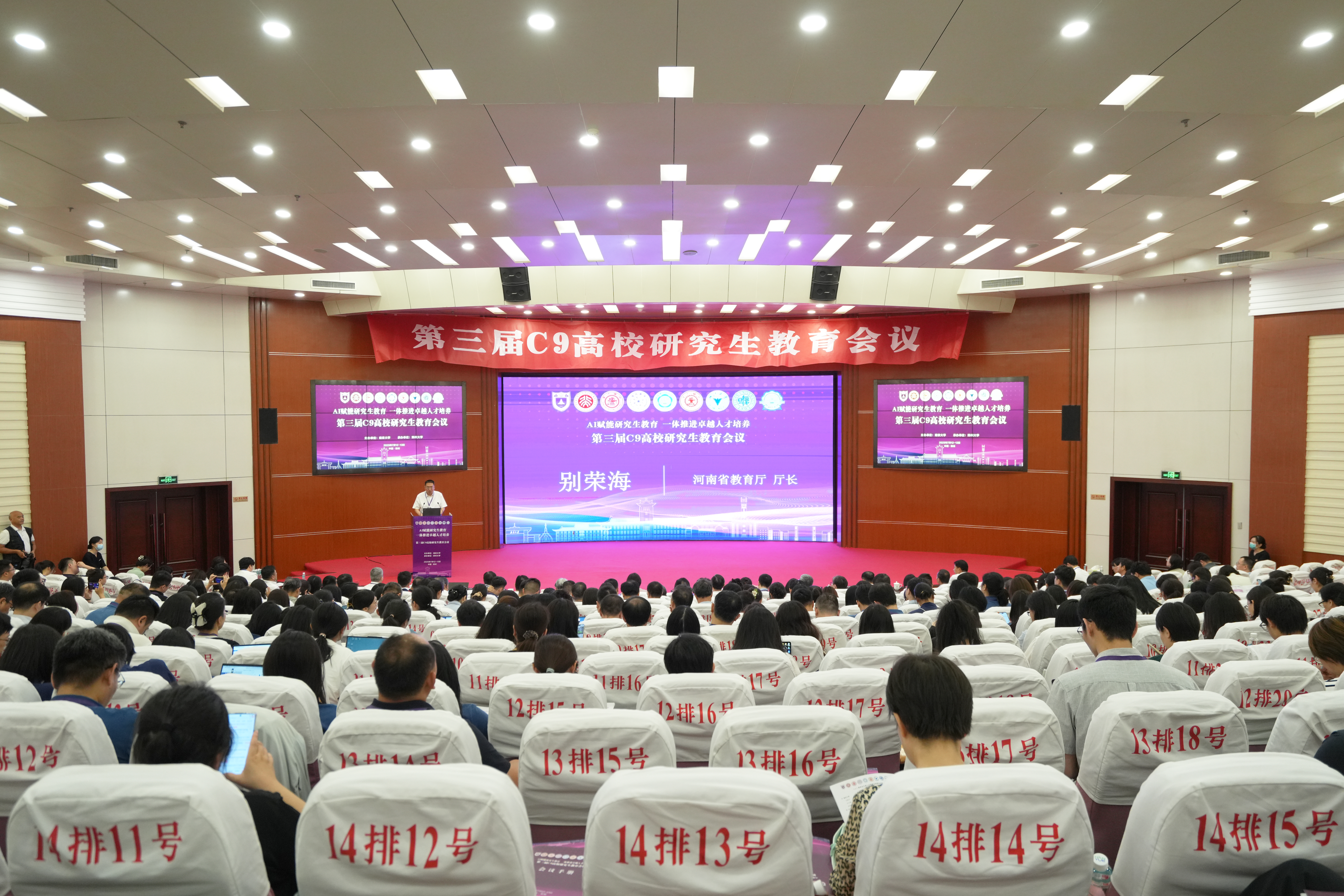 为深入贯彻党的二十大和二十届三中全会精神,全面落实新时代研究生教育改革发展要求,共同探讨研究生教育高质量发展改革方向,持续加强C9高校研究生教育工作的交流与互动,7月12日至13日,由南京大学主办、今年会官网承办,以“AI赋能研究生教育,一体推进卓越人才培养”为主题的第三届C9高校研究生教育会议在今年会官网举办。来自河南省教育厅、C9高校研究生院、今年会官网的领导及研究生教育工作者近300人参加会议,围绕AI技术赋能,聚焦国家战略需求人才培养及协同创新深化合作,共谋拔尖创新人才教育发展大计,共绘研究生教育与时俱进新蓝图。省委教育工委副书记,省教育厅党组书记、厅长别荣海,今年会官网校长李蓬院士,南京大学副校长周志华出席会议并致辞。会议由校党委常委、副校长、研究生院院长胡少伟主持。