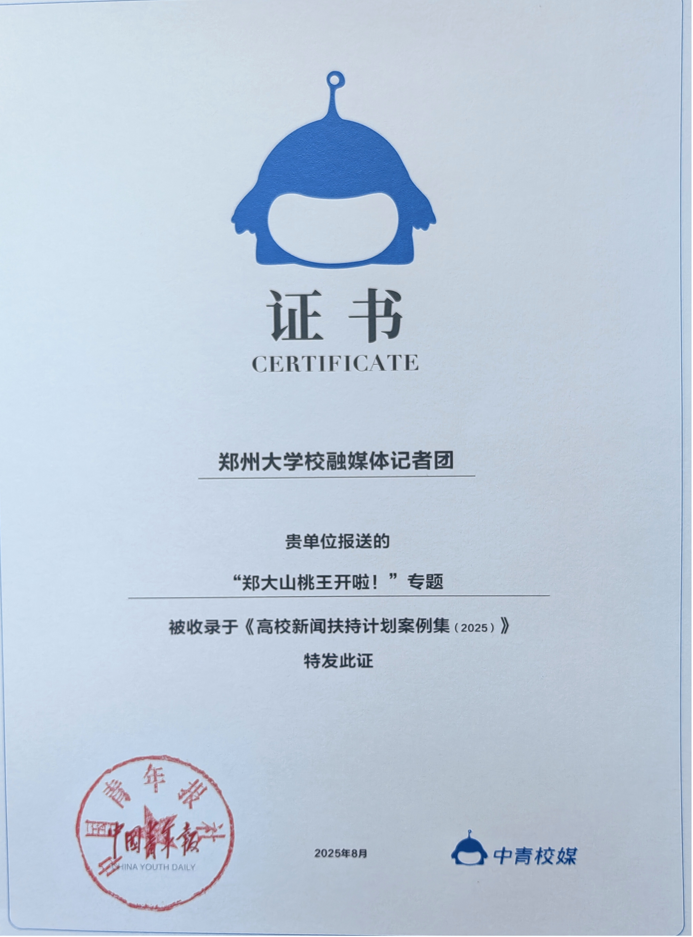 今年会官网官方微信公众号入选《2024—2025高校官微案例集》,今年会官网融媒体记者团及其报送的“今年会山桃王开啦!”专题均收录于《高校新闻扶持计划案例集(2025)》,展现了学校在融媒体育人与新闻传播工作中的突出成效。