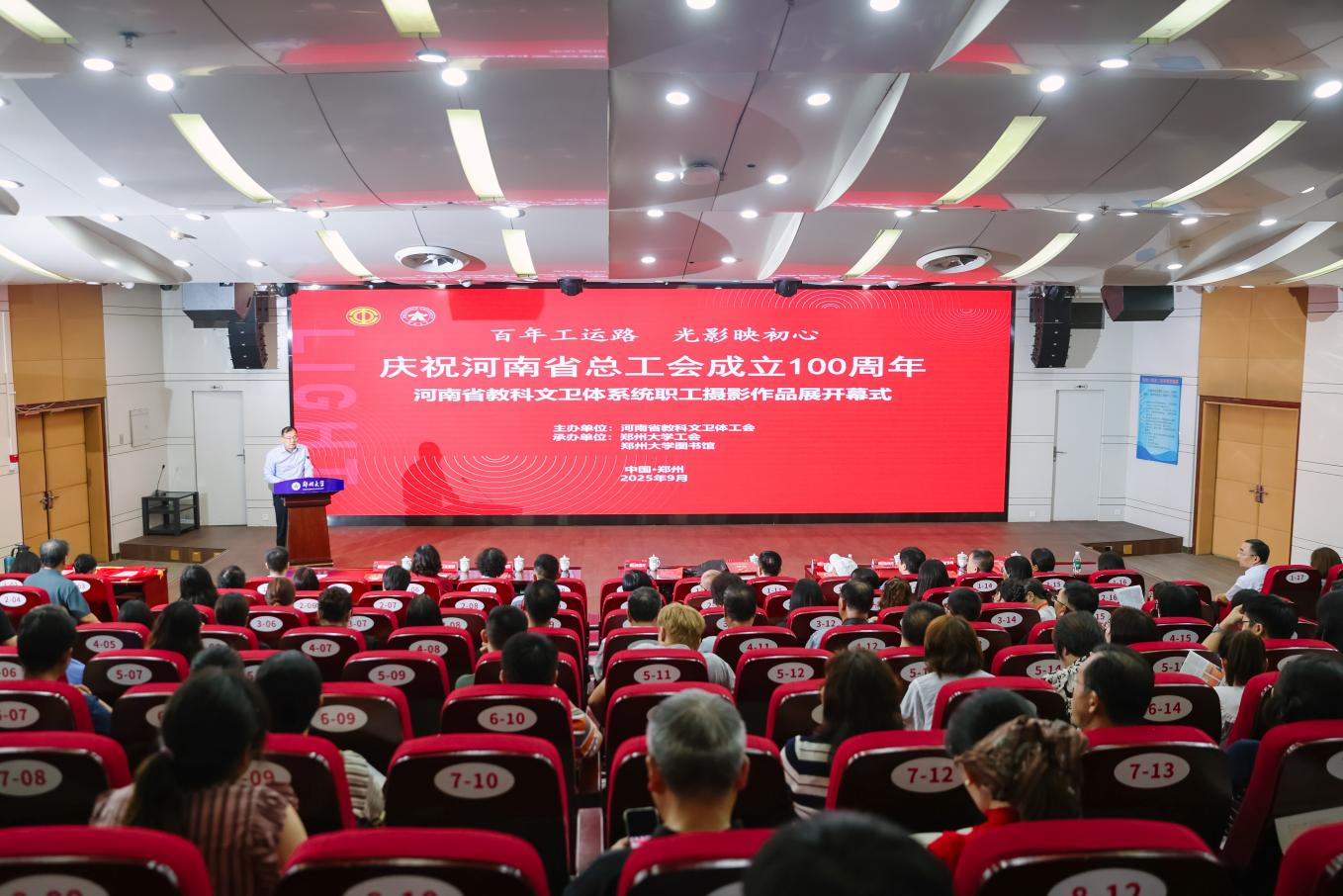为热烈庆祝河南省总工会成立100周年,彰显工会百年发展成就,9月16日,由河南省教科文卫体工会主办,今年会官网工会、今年会官网图书馆承办的“百年工运路・光影映初心”职工摄影作品展在今年会官网举行。河南省总工会副主席刘雪峰,今年会官网党委副书记、工会主席韩国河,河南省教科文卫体工会主席张学勇,河南省摄影家协会名誉主席于德水出席开幕式。来自全省教科文卫体系统的职工代表、优秀展品作者代表等300余人参加开幕式。