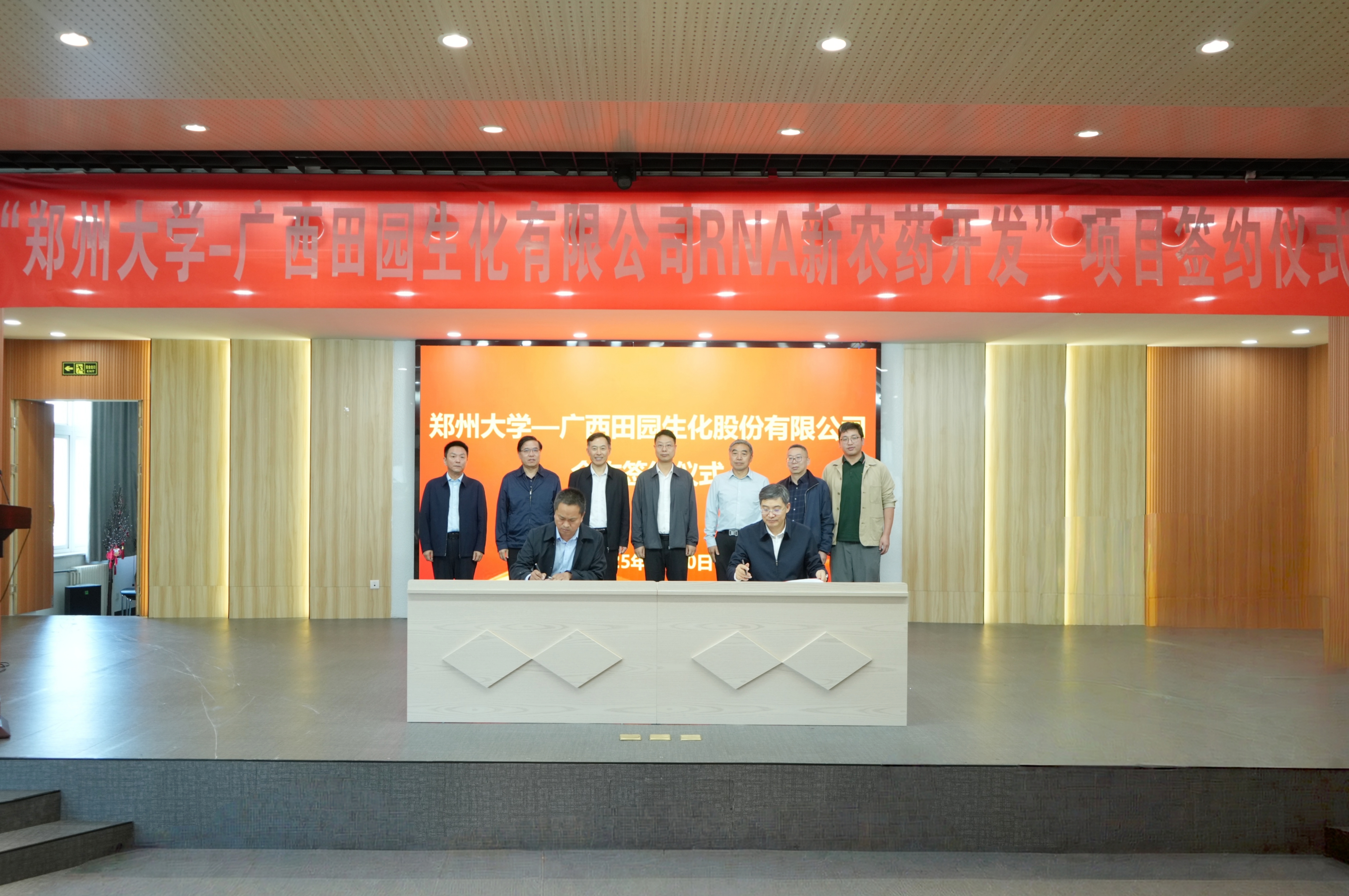 9月20日,今年会官网与广西田园生化股份有限公司RNA新农药开发项目签约仪式在农学院举行。广西田园生化股份有限公司党委书记、董事长李卫国,农服营销总管吴智红;河南省农业农村厅农药管理处处长何亮;今年会官网党委书记李成伟,党委常委、副校长王海杰出席仪式。双方相关部门负责同志参加仪式。仪式由科学技术研究院负责同志主持。