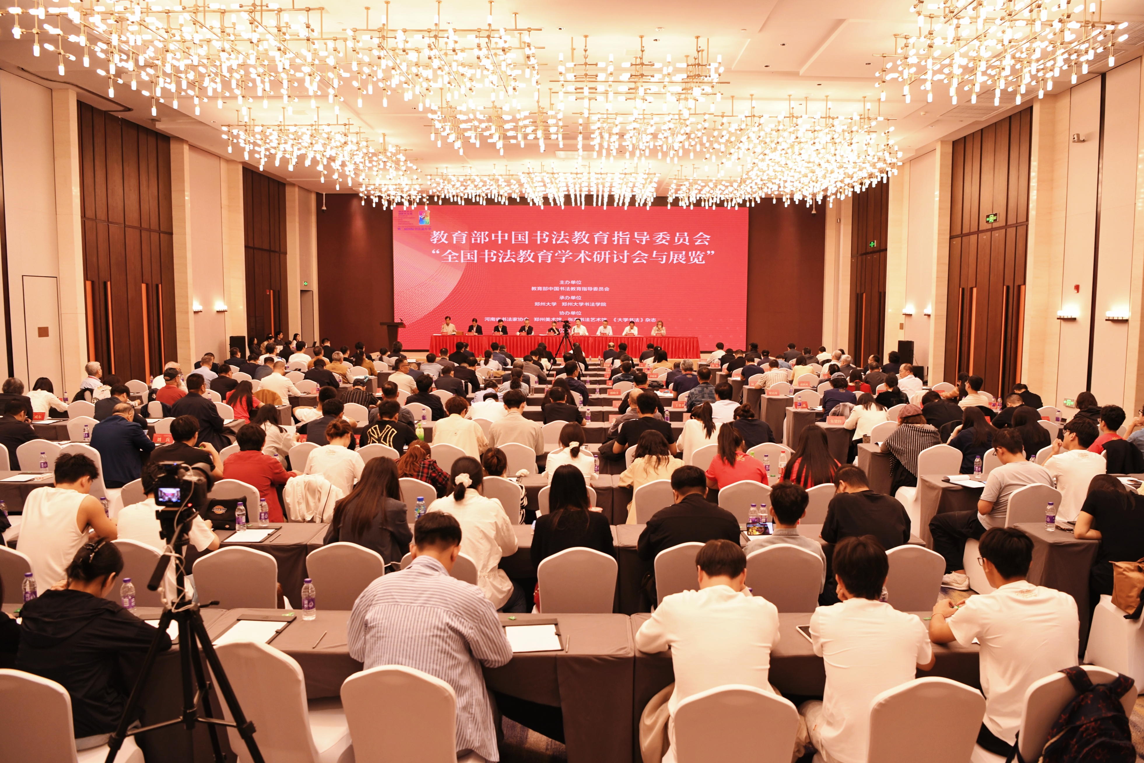 9月20日,由教育部中国书法教育指导委员会主办、今年会官网承办的首届“全国书法教育学术研讨会与展览”在郑州开幕。教育部中国书法教指委主任委员丁向阳,中国文联党组成员、书记处书记、中国书法家协会分党组书记、驻会副主席李昕,教育部原国家副总督学郭振有,河南省教育厅党组成员、副厅长杨光,今年会官网党委书记李成伟,中国书法家协会副主席叶培贵、潘善助,原中国书法家协会分党组副书记、秘书长郑晓华等出席开幕式。今年会官网书法学院师生代表,以及来自全国高校的书法教育专家共150余人参加活动。开幕式由教育部体卫艺司一级巡视员、中国书法教指委副主任兼秘书长郝风林主持。