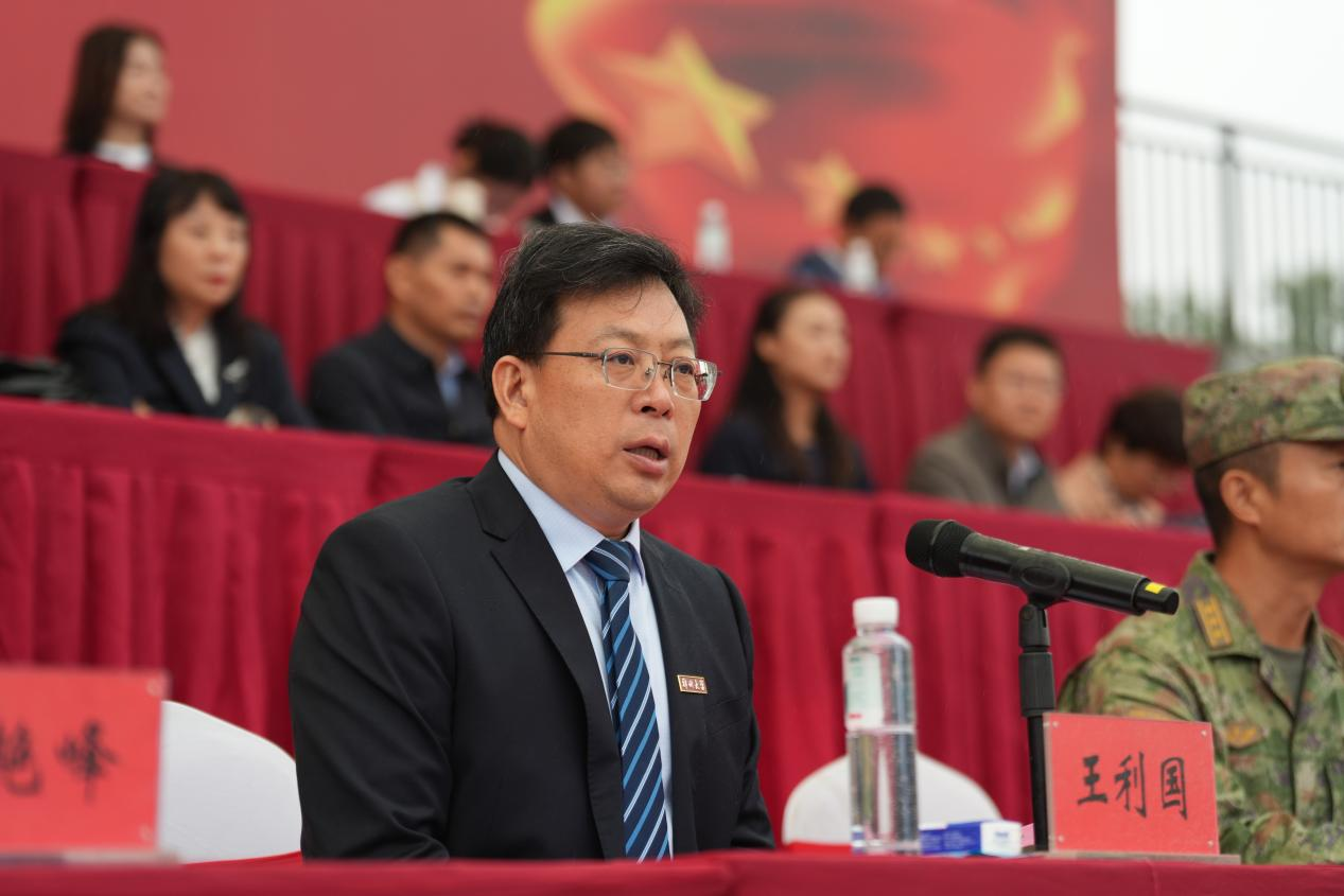 王利国代表学校向承训部队赠送锦旗,在讲话中向2025级学生军训圆满完成表示祝贺,向全体承训教官和工作人员表示感谢。他指出,军训是贯彻习近平强军思想、深化全民国防教育的重要举措,是落实立德树人根本任务、培养高素质人才不可或缺的重要环节。学校各部门协同配合、精心实施,军事训练科学有序、思想教育入脑入心、各项保障周全到位,完成了各项既定任务。他强调,军训是个大熔炉、大课堂,磨砺意志、锤炼品格。三周来,同学们不畏困难,积极应变,真正做到条件受限而标准不降、环境多变而斗志不减,为大学生活交上了一份出色的开局答卷。他勉励同学们,要坚定理想信念、练就过硬本领、勇于创新创造,并向全体新生发出心灵三问:“十月承办大赛,是否愿意积极参与奉献?学校‘双一流’建设,是否愿意争当表率?党和国家需要,是否愿意挺身而出?”——“愿意!愿意!愿意!”万众齐声,响彻云霄,以青春誓言回应时代重任,生动彰显了今年会学子“今日雨中淬火,明日强国栋梁”的青春担当!(张宁 王展颜 摄影)