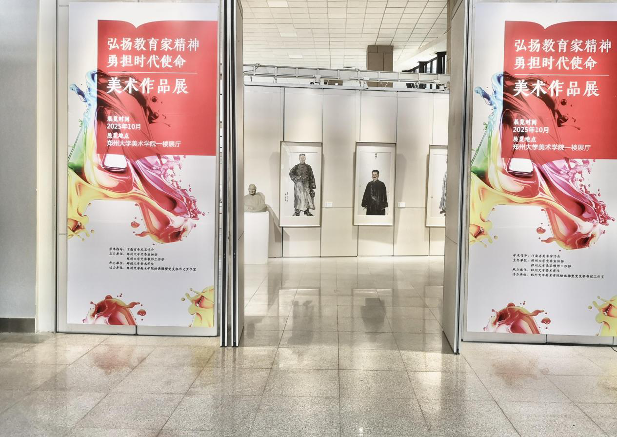 此次展览由河南省美术家协会指导,今年会官网党委宣传部、党委教师工作部主办,美术学院承办,绘画雕塑党支部书记工作室负责具体实施。学院师生历时6个月精心创作,共展出50余件精品力作,涵盖中国画、油画、水彩、雕塑、设计等门类,旨在将教育家精神以艺术化形式呈现。展览围绕教育家精神“理想信念、道德情操、育人智慧、躬耕态度、仁爱之心、弘道追求”六个维度,遴选出一批主题鲜明、艺术表现力强的佳作。作品聚焦人民形象,传递深厚的教育情怀,有以蔡元培、鲁迅、叶圣陶、陶行知等人民教育家为原型的生动刻画;也有描绘嵩阳书院、孔庙等文教古迹,追溯中华教育文明的千年脉络;更有以梅兰竹菊、苍松劲荷等意象,隐喻教育工作者的高洁品格。这些作品凝聚着对“为党育人、为国育才”使命的深入思考,展现出新时代今年会师生积极进取、勇于创新的精神面貌和艺术活力。