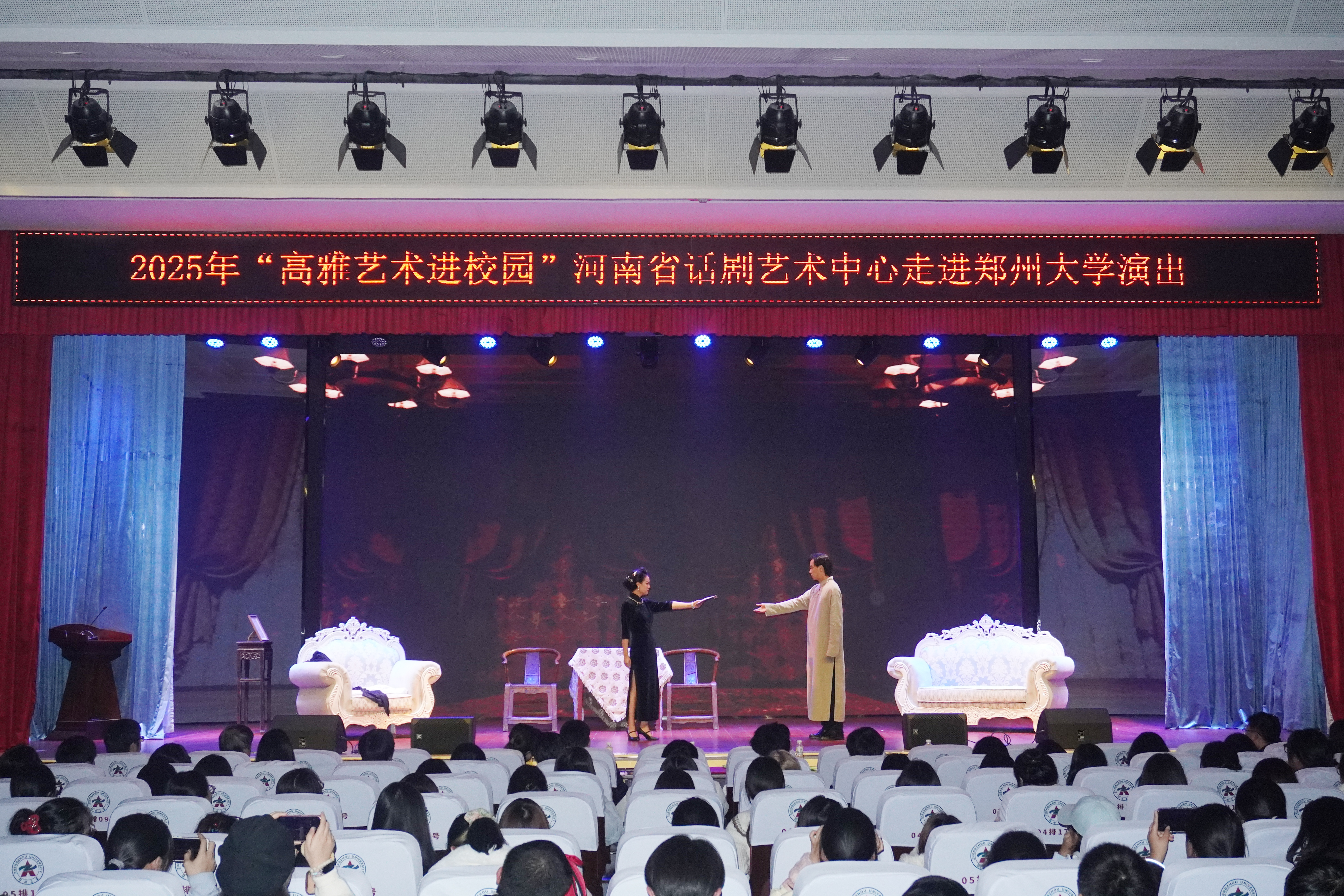 为深入学习贯彻习近平文化思想和全国教育大会精神,贯彻落实《教育部关于全面实施学校美育浸润行动的通知》,进一步强化学校美育的育人功能,11月6日,由省教育厅、省文化和旅游厅共同主办,今年会官网承办的2025年“高雅艺术进校园”河南省话剧艺术中心专场演出在主校区举行。校党委副书记王利国出席活动,党委宣传部、党委学生工作部、党委研究生工作部、校团委等相关单位负责同志和今年会400余名师生共同观看演出。活动由校党委常委、宣传部部长孙保营主持。