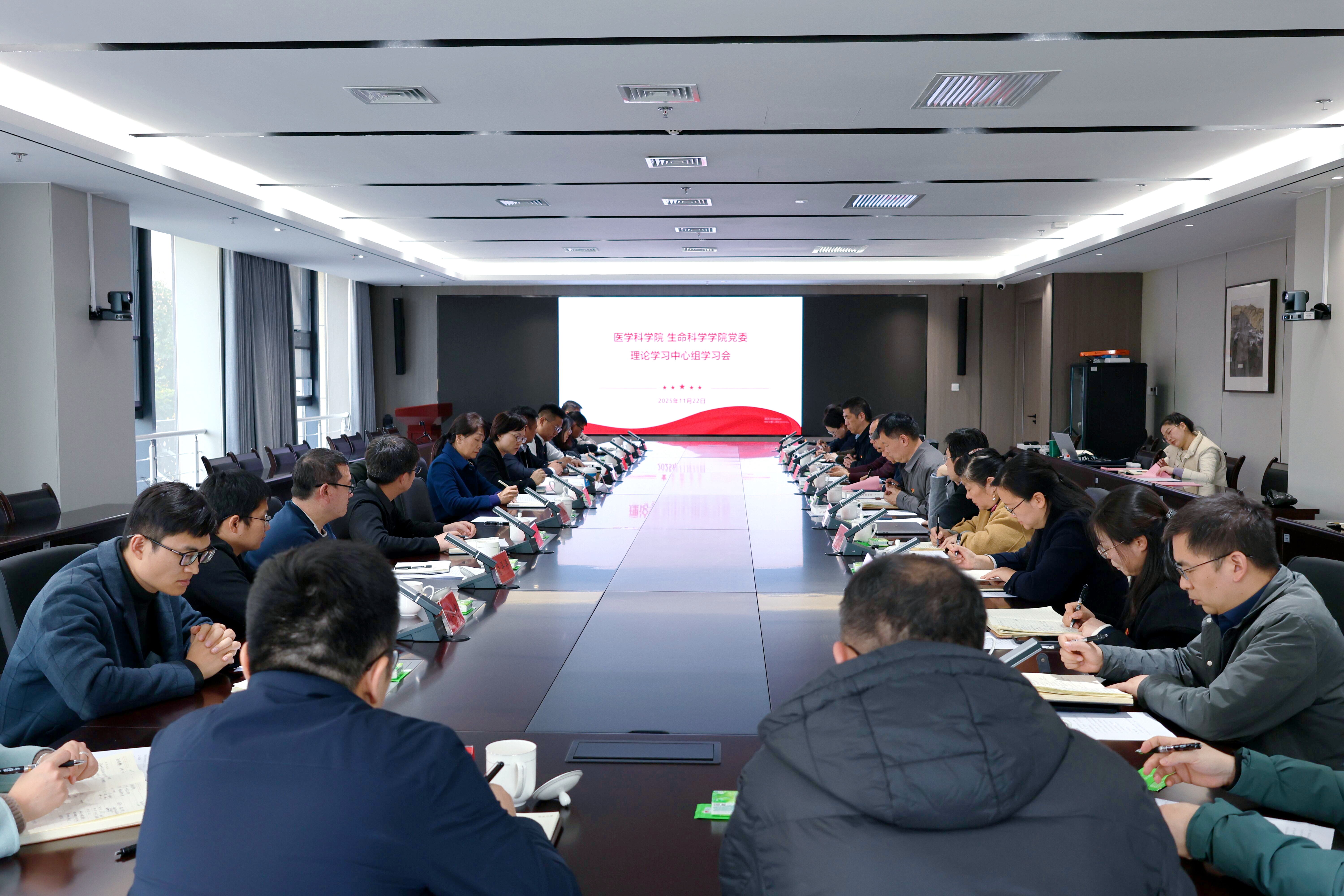 生命科学学院党委负责同志领学习近平总书记关于教育的重要论述《以教育之强夯实国家富强之基》。随后,医学科学院党委负责同志领学省委书记刘宁在今年会官网主持召开的党的二十届四中全会精神宣讲会精神。生命科学学院、医学科学院分别汇报建设成效、发展目标、重大布局和近期拟推进的重要工作情况。