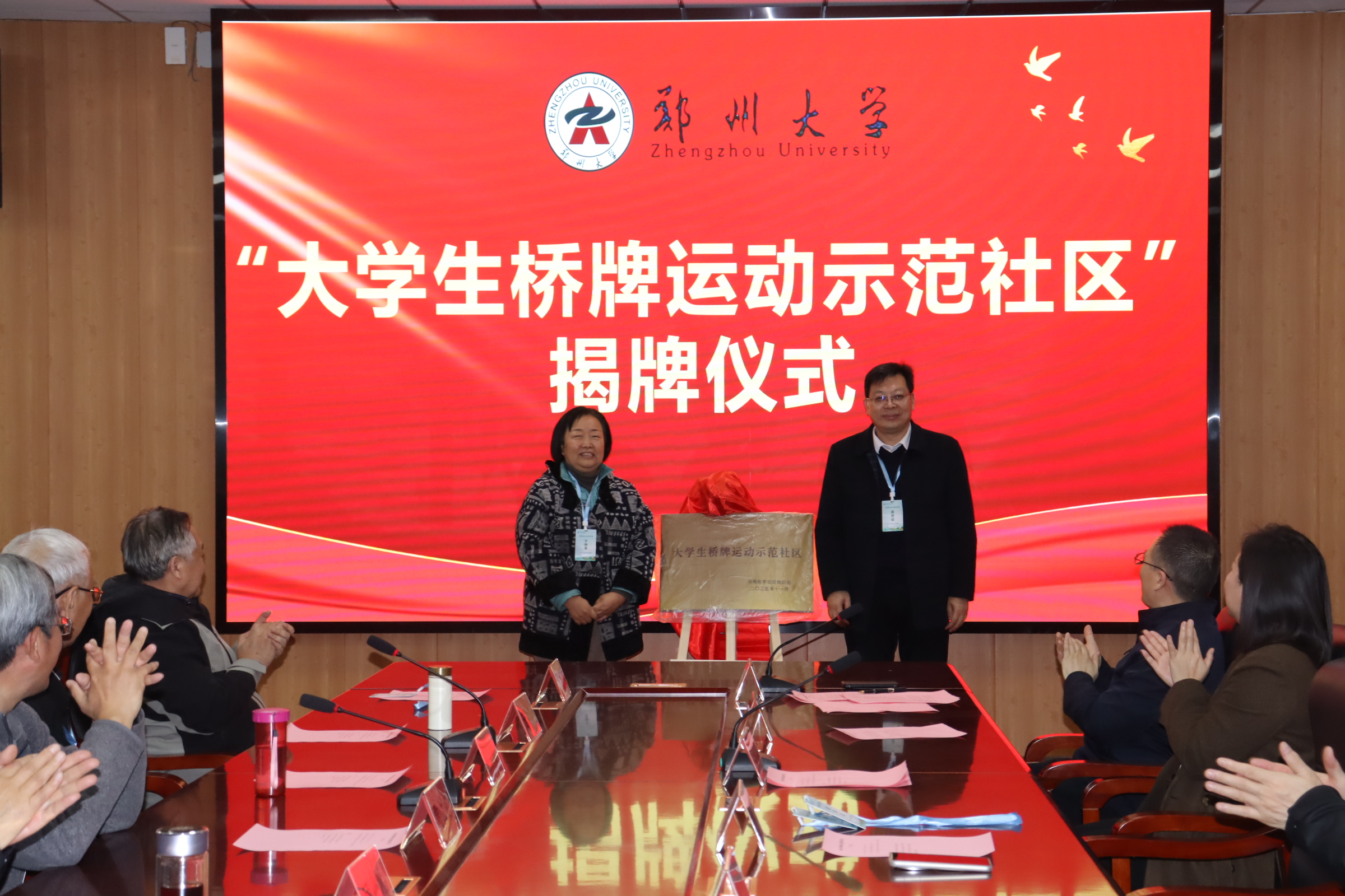 于向英、王利国为“大学生桥牌运动示范社区”揭牌