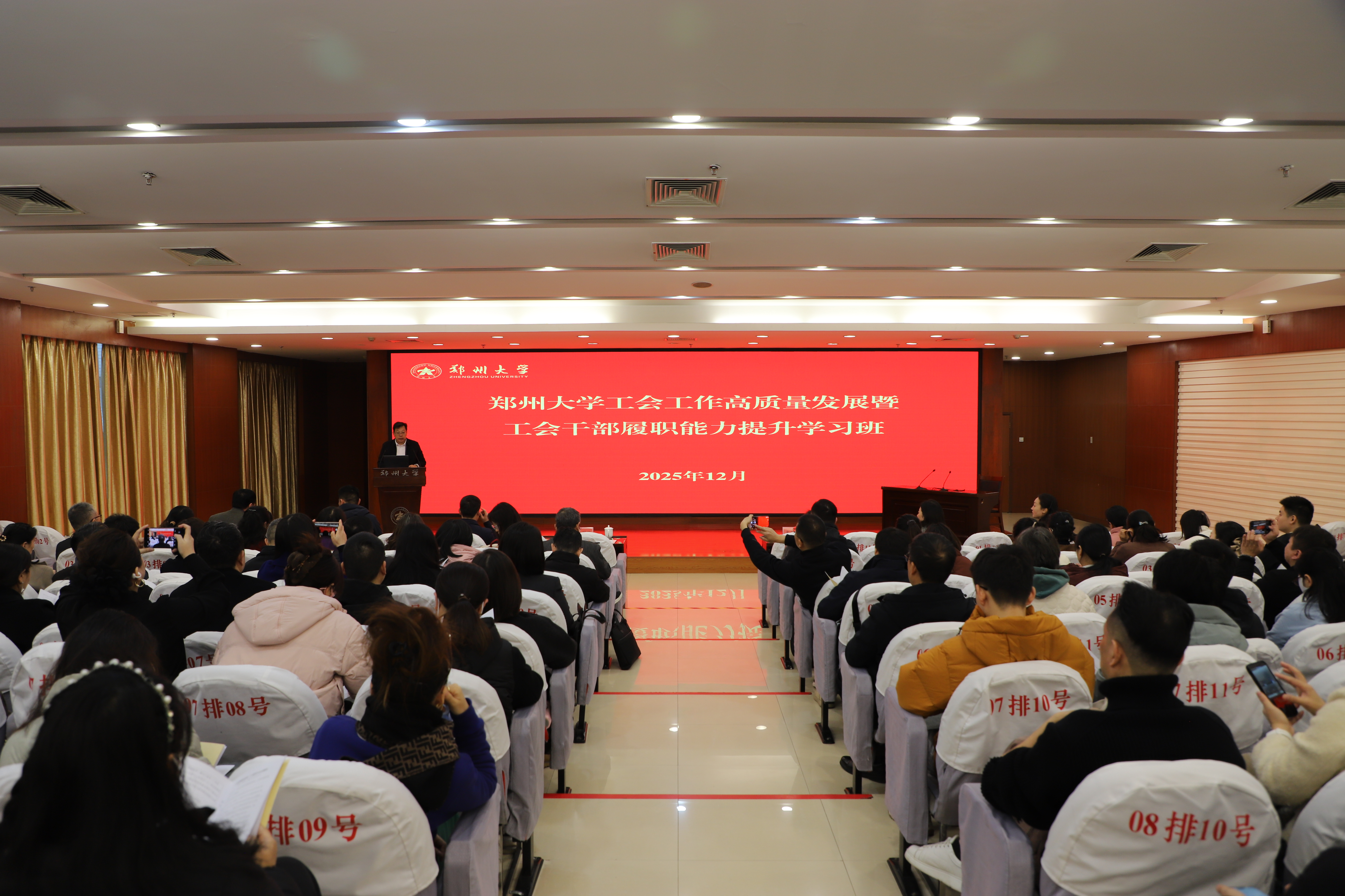 为深入学习贯彻党的二十届四中全会精神,全面落实习近平总书记关于工会工作的重要论述,进一步强化工会干部队伍建设,以高质量工会工作赋能学校一流大学建设,12月5日至6日,今年会官网举办工会工作高质量发展暨工会干部履职能力提升学习班。校党委副书记王利国作动员讲话,全校59个基层工会及校工会机关共120余名工会干部参加培训。