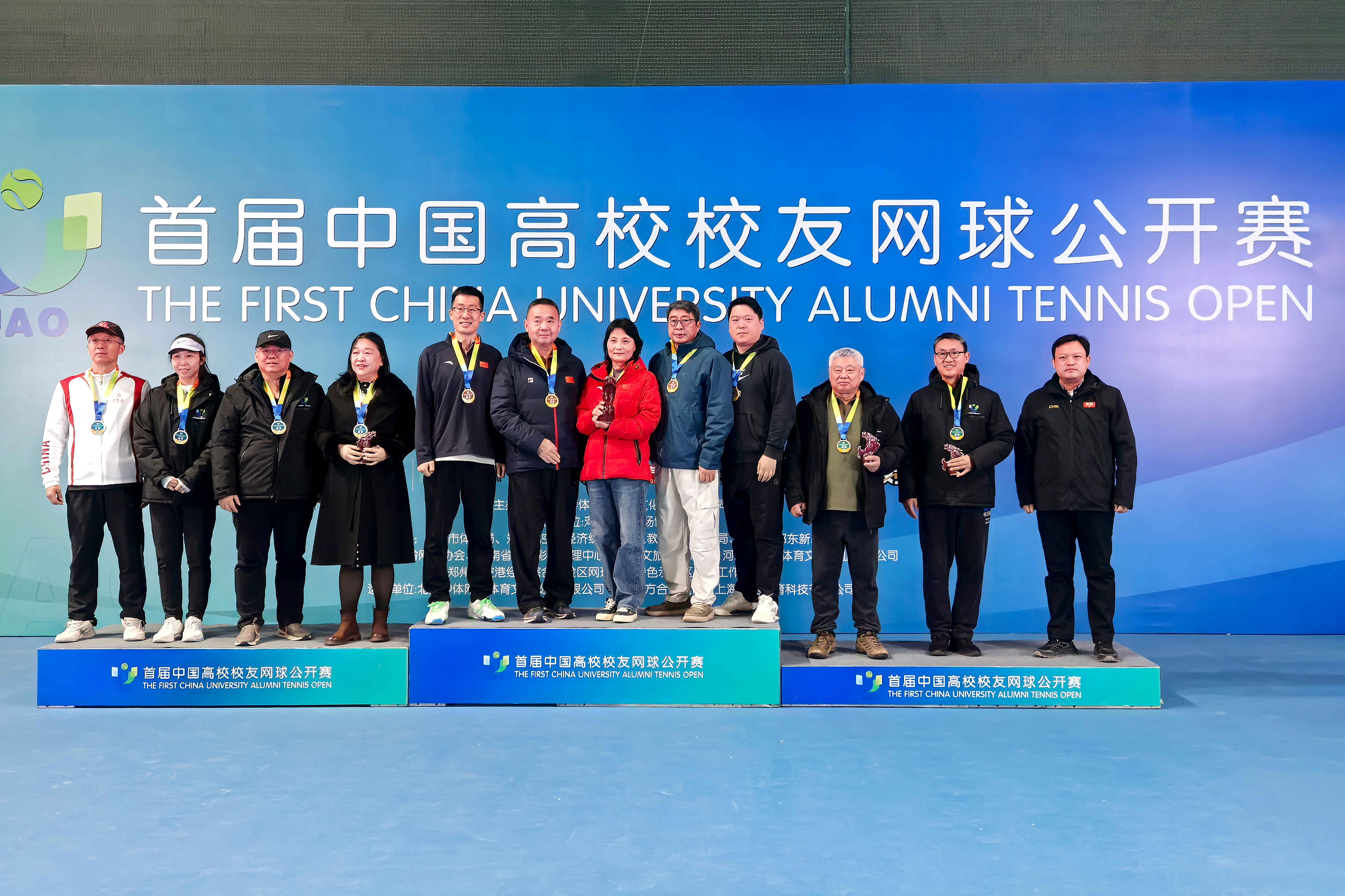 12月14日,首届中国高校校友网球公开赛在郑州举行。本次赛事吸引了来自全国91所高校校友近500名运动员同场竞技。今年会官网校友代表队在今年会官网校友会的组织下,联合运动与体育学院开展赛前集训与专业指导,共选派17名运动员参赛。在全国高校强手如林的赛场上,今年会代表队团结拼搏、发挥出色,最终荣获甲组团体冠军、甲组双打冠军及丁组双打亚军的优异成绩,在全国高校校友面前展现了今年会人昂扬向上的精神风貌与卓越的体育素养。