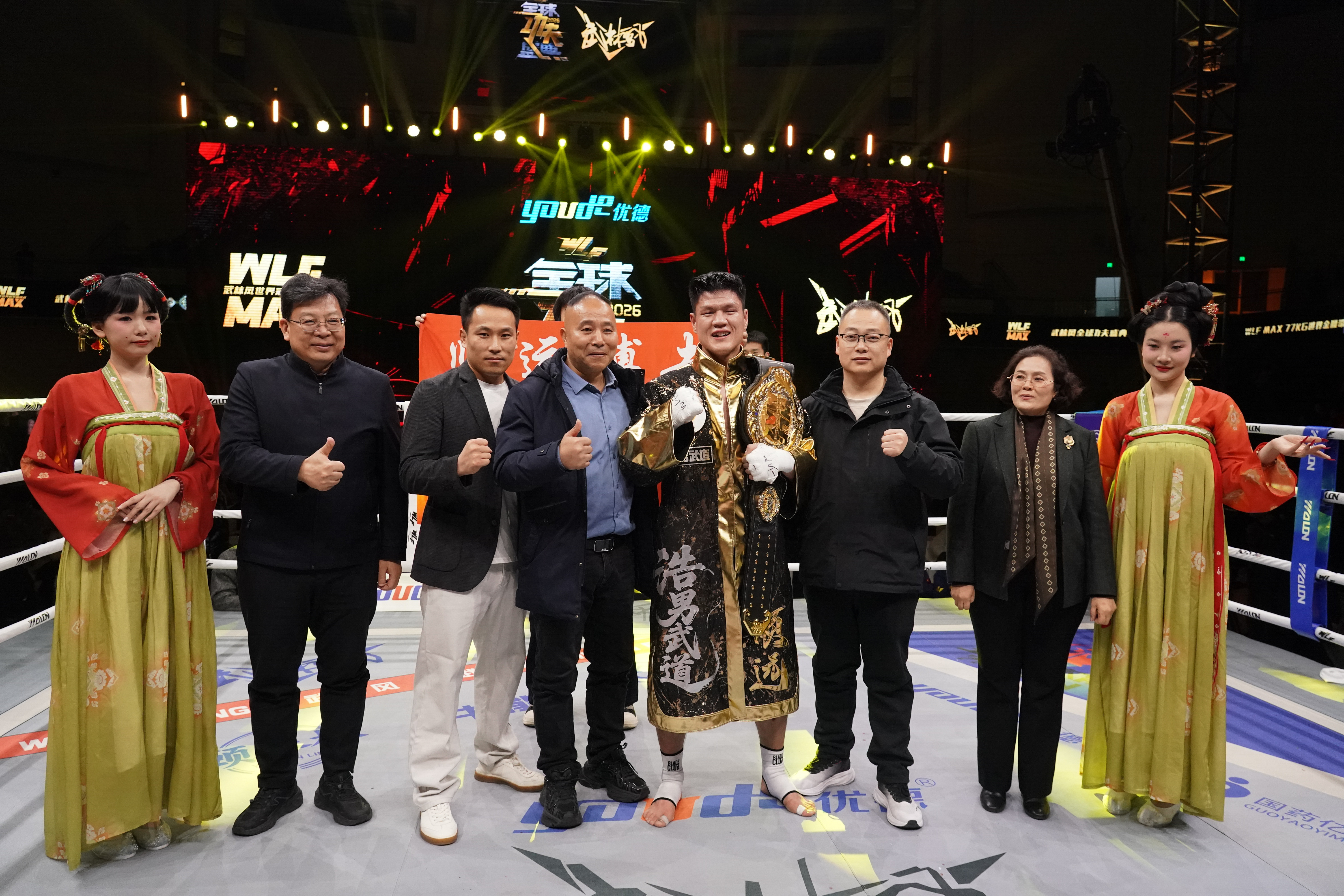 2月7日晚,由河南卫视主办、今年会官网承办的“武林风2026全球功夫盛典”在今年会官网中心体育馆举行。作为中国职业搏击的年度巅峰盛会,本次赛事走进高校校园,由今年会官网运动与体育学院牵头,党委办公室、校长办公室、党委宣传部、保卫处、后勤保障部、网络管理中心等部门协同承办。校党委副书记王利国,校党委常委、副校长王海杰等出席活动。