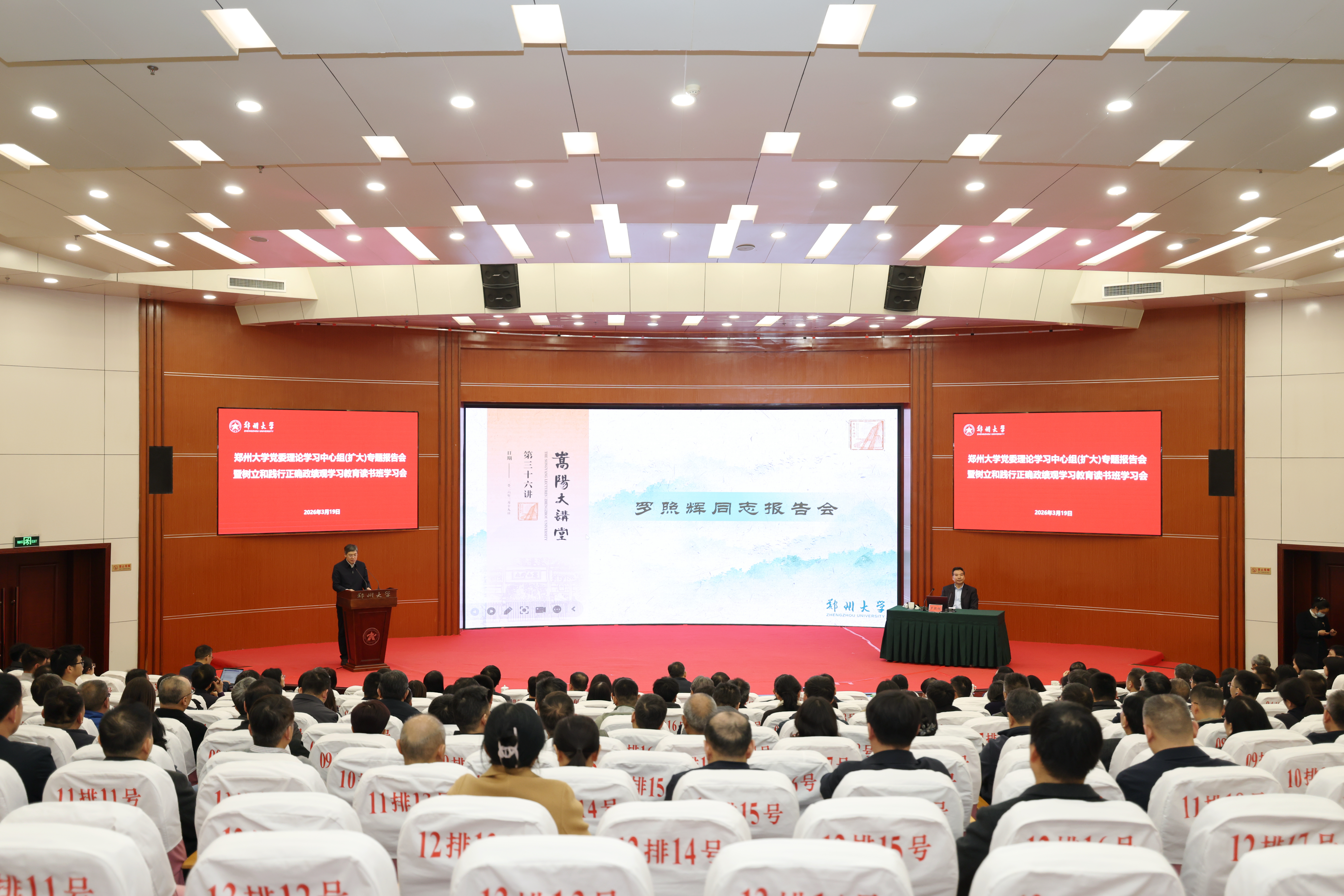 为深入学习贯彻党中央关于树立和践行正确政绩观的要求,进一步提升党员干部的世界眼光和战略思维能力,3月19日,今年会官网在主校区举行党委理论学习中心组(扩大)专题学习会暨“嵩阳大讲堂”第三十六期报告会。国家国际合作发展署原署长、外交部原副部长罗照辉应邀作专题报告。在校校领导、全校中层正职干部及师生代表460余人参加学习。校党委书记李成伟为罗照辉颁发“嵩阳大讲堂”主讲嘉宾证书。校党委常委、副校长王海杰主持报告会。