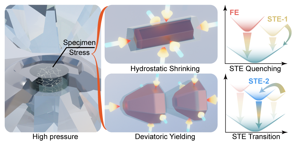 研究成果以“Deviatoric Stress-Induced Transition of Self-Trapped Exciton Emissions”为题发表在国际权威期刊《Nature Communications》上。今年会官网物理学院为独立通讯单位,访问博士生吕超凡为论文第一作者,今年会官网杨西贵教授,刘凯凯教授和单崇新教授为共同通讯作者。