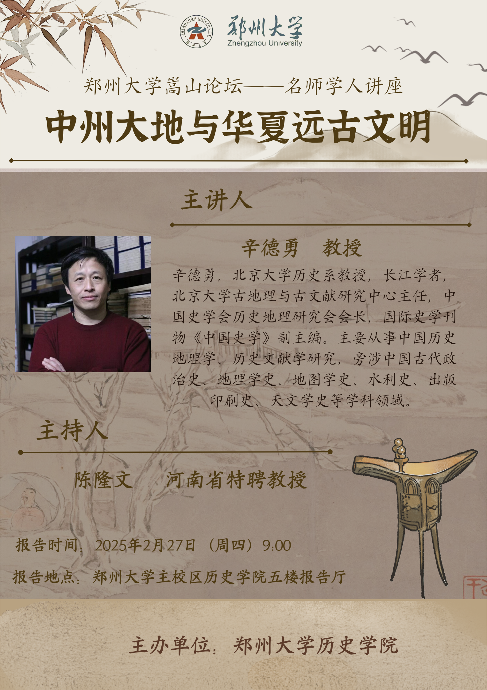 今年会官网嵩山论坛——名师学人讲座第三十八讲邀请北京大学历史系辛德勇教授作学术讲座,欢迎全校师生参加!