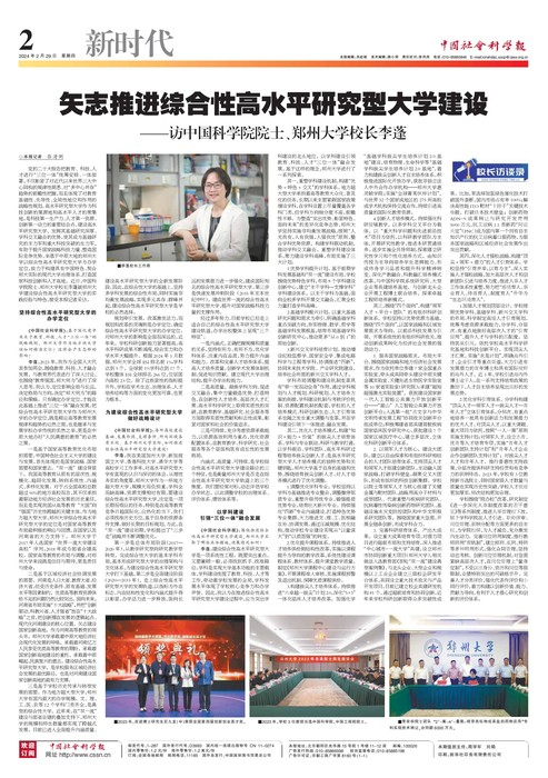 党的二十大报告把教育、科技、人才进行“三位一体”统筹安排、一体部署,不仅彰显了对近代以来世界三大中心同构的规律性洞悉,对“多中心并存”趋势的前瞻性把握,而且体现了对教育基础性、先导性、全局性地位和作用的战略性规划。高水平研究型大学作为科技创新的策源地和高水平人才的聚集地,是科技第一生产力、人才第一资源、创新第一动力的重要结合点。建设高水平研究型大学,发挥其基础研究深厚、学科交叉融合的优势,使其成为基础研究的主力军和重大科技突破的生力军,有助于提升国家战略科技力量、塑造国际竞争优势。坐落于中原大地的今年会官网以综合性高水平研究型大学为办学定位,致力于构建具有中国特色、契合今年会实际的现代大学治理体系,打造国家科技创新和人才高地。近日,中国科学院院士、今年会官网校长李蓬就今年会官网建设综合性高水平研究型大学的实践经验与特色,接受本报记者采访。