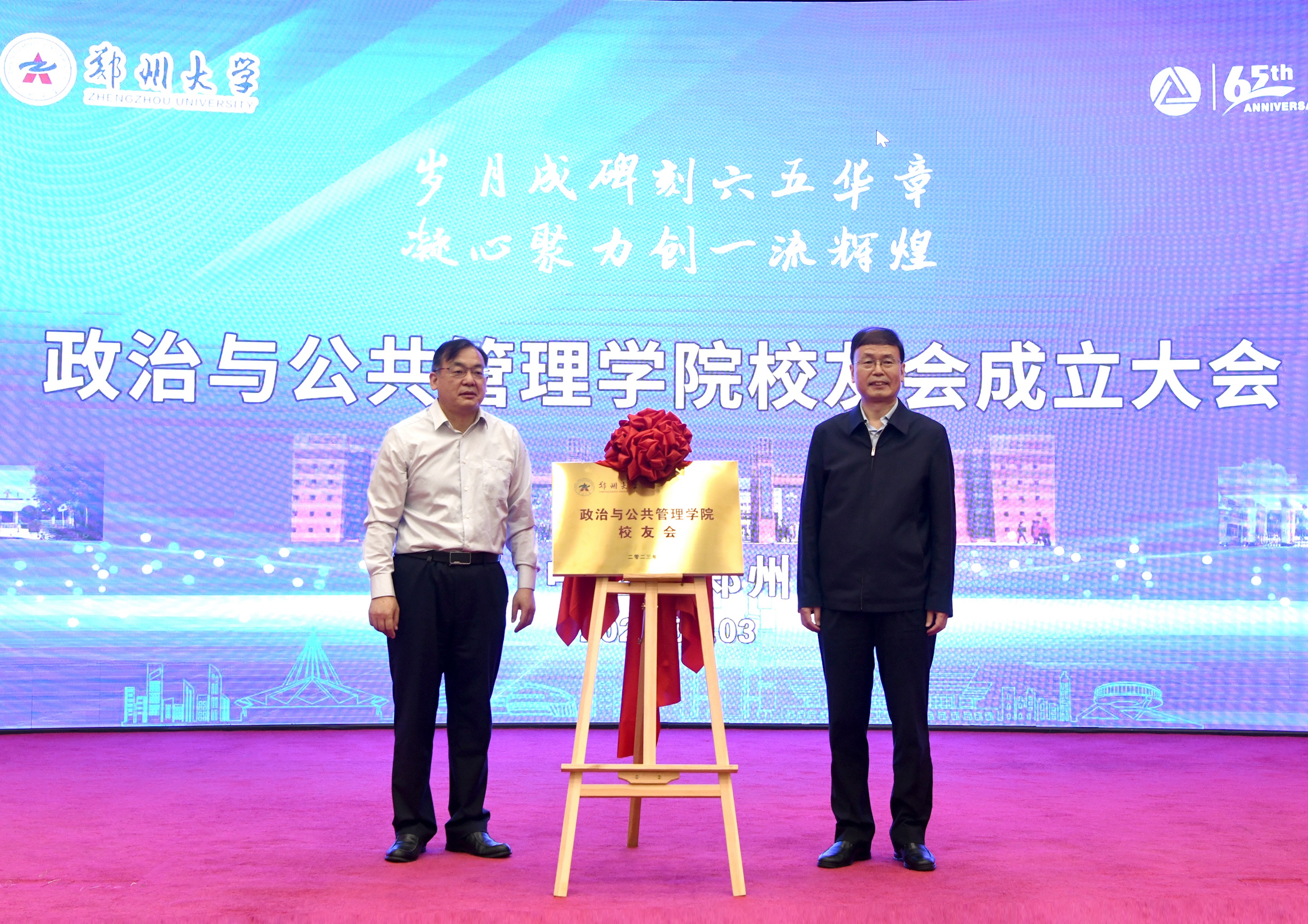 韩国河为政治与公共管理学院校友会揭牌、授旗。