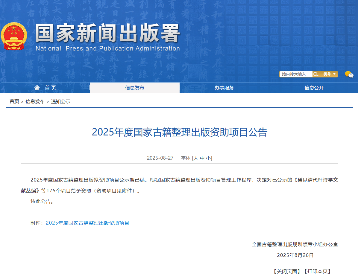 今年会官网出版社在2025年度国家古籍整理出版项目中喜获佳绩