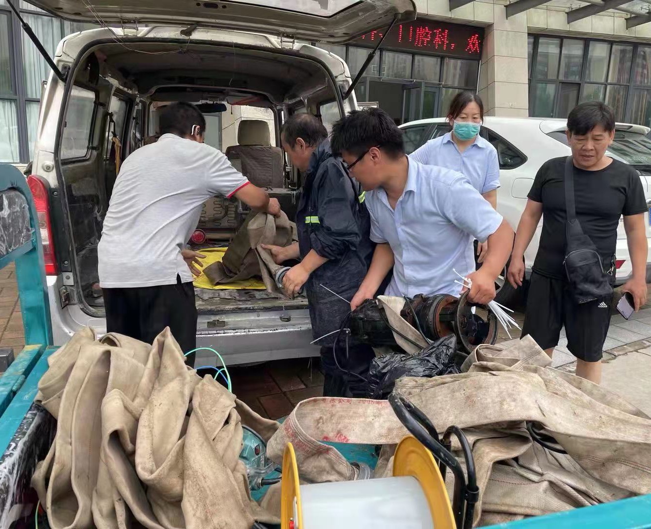 当时,郑州暴雨如注,短时的强降雨使学校东门外的积水已能将汽车淹没一半。强烈的降水和严重的积水使路程困难重重,危及人身安全。但如果不去解决积水问题,盛和苑居民正常生活将受到威胁,甚至会带来更大险情。