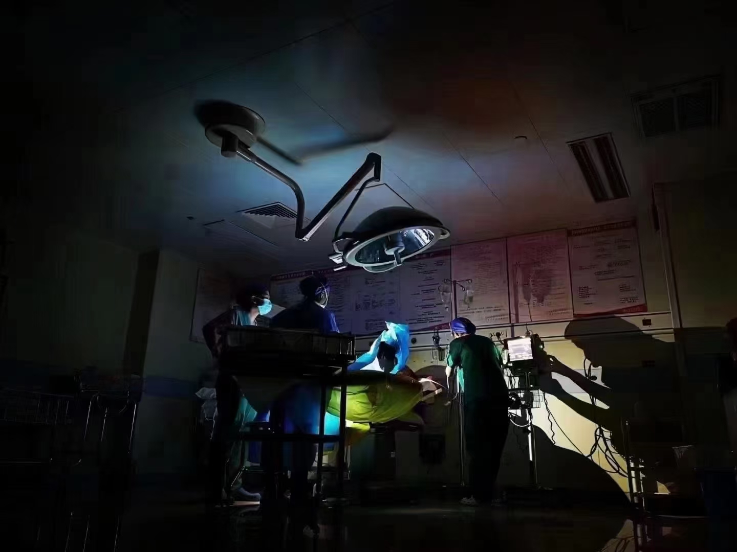 三附院突然停电时,产房里有20多位产妇。董留琛拍下照片的那个时段,有6位都在分娩过程中。电停了,但分娩却无法停下来。在停电的第一时间,产房护士长王璐当机立断,指挥大家拿出应急电源,优先送到正在分娩的分娩间。产床旁的助产士握着产妇的手不停地鼓励:“有我们在,你别害怕,只管用力就好。”其他助产士一人盯守一个产妇,观察产程,不停地安慰产妇,缓解他们紧张焦虑的情绪。