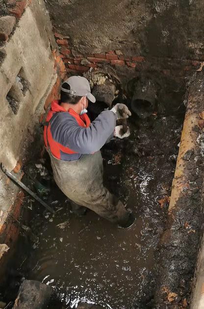 在10月中旬的注水排查过程中,柳园2号楼阀门井内的异常积水现象引起工作人员的重视,他们推测是暖气管道破裂引起的漏水,并立即展开维修。暖气管道排列在地下管道沟中,其漏水情况肉眼无法观察,也很难用机器检测,只有维修人员钻进沟中才能进行排查。经过通风后,王猛、刑培育、杨勇等维修人员穿上皮裤,在高一米二的地沟中,猫着腰往深处前行。厕所排出的污水让沟内的空气格外混浊,水位最深处已经漫过膝盖,昏暗的地沟中,头灯成为指引前行方向唯一的光源。在地沟中弯腰前行了80多米后,他们找到了管道漏水点,最终抢修完毕。排查过程中,许多宿舍楼的外部管道出现爆管情况。工作人员每天都要进行巡查,一旦发现隐患,第一时间展开挖沟、停水、控管、换管等一系列维修工作。例如,在修补柳园17号楼前的管道时,他们从下午两点一直忙碌到凌晨一点多,不分昼夜地抢修了11个小时,对坏损的管道和阀门进行更换,为后期供暖又添一道保障。