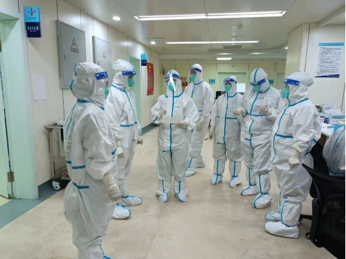 98年出生的赵辽源,是医疗队中年纪最小的队员,作为刚走上工作岗位2年的新人,在听到医院要组建援吉医疗队的第一时间内,她毫不犹豫、毫不退缩、主动报名请战。在支援期间,她从没因为自己年龄最小而娇气,反而自告奋勇主动承担了病区最繁重、最辛苦的工作。