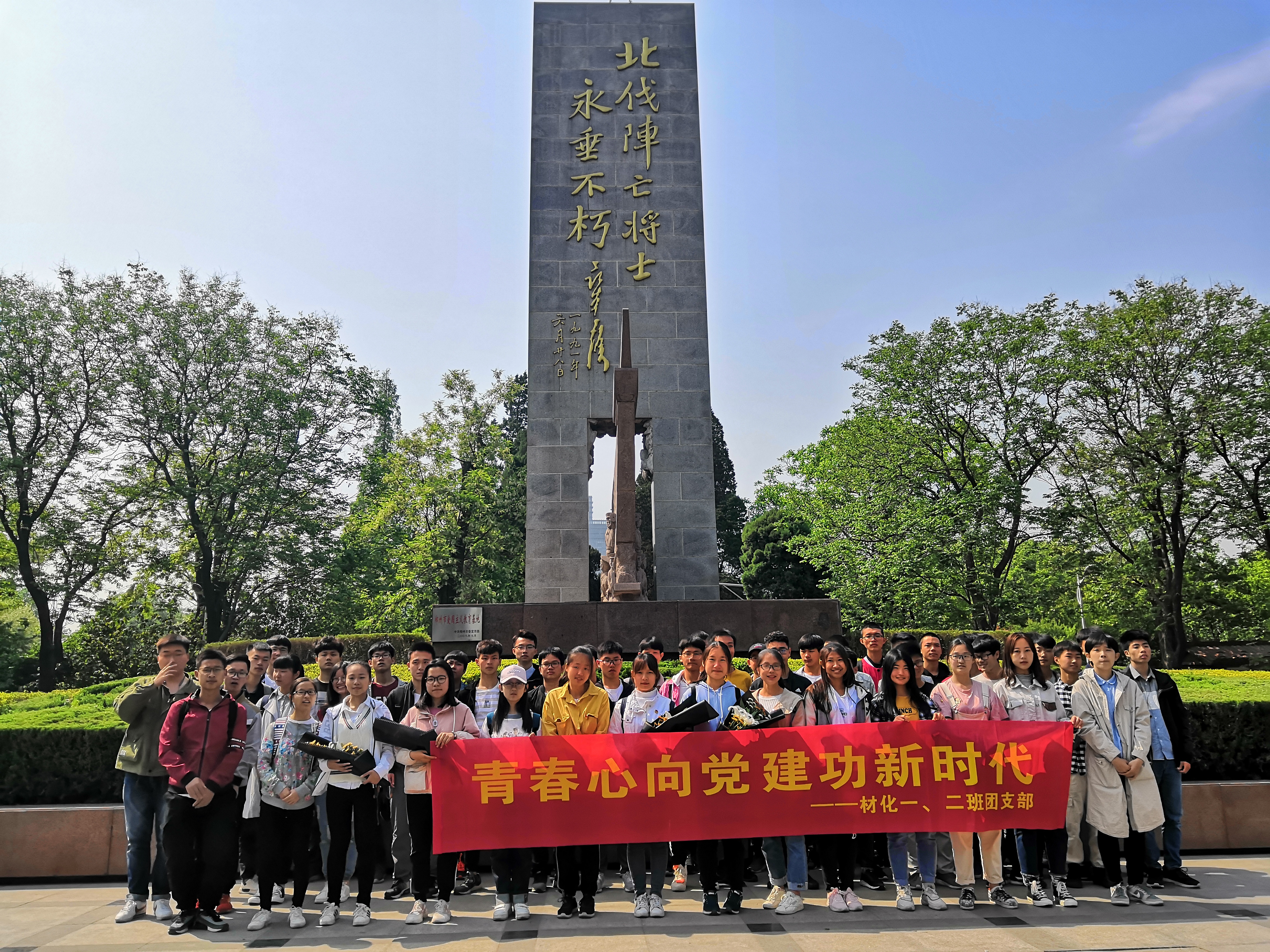 丰富多彩的团日活动也是他们课余生活的重要一环。大二的一次团日,为响应“青春心向党,建功新时代”的主题,两班一起组织了一次北伐抗日英雄纪念碑献花活动,近50位同学在庄严的纪念碑下献花、宣誓、签名并拍照。周六的公园人群熙攘,他们笔直站立、齐唱国歌的身影吸引了大批游客。“在那么多人围观的情况下,我本来觉得大家能出声就很配合了,没想到大家声音都很洪亮。”回想起当时的场景,一班原团支书张路发欣慰地说。