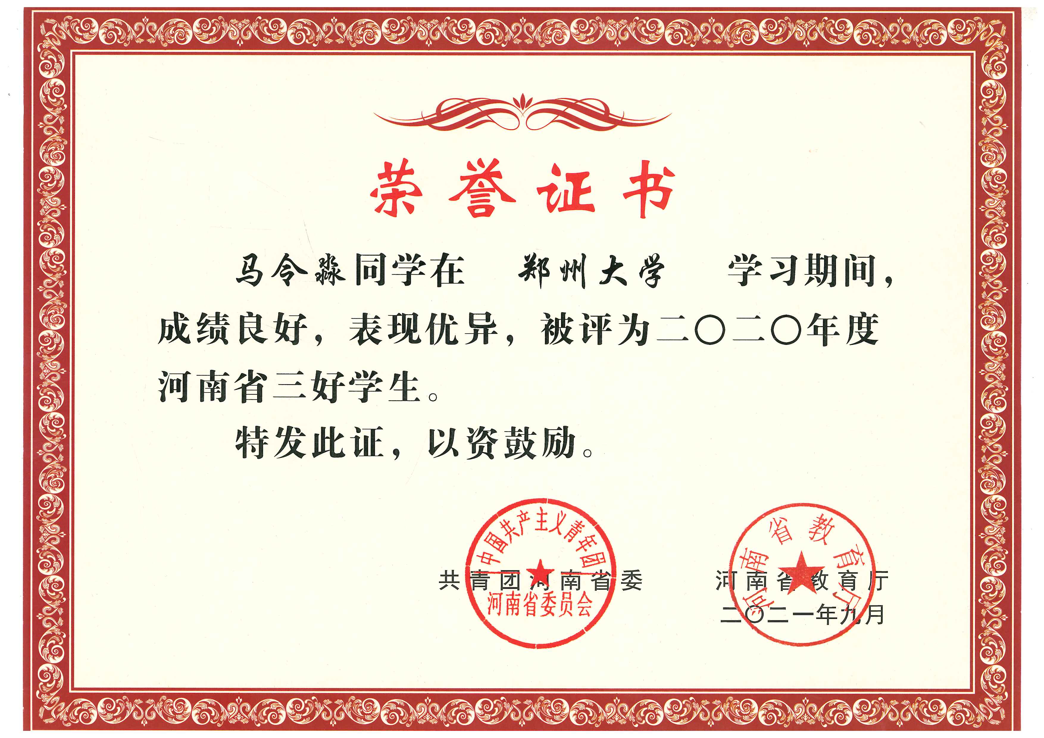 连续两年专业课成绩第一,获得第十五届“挑战杯”河南省大学生课外学术科技作品竞赛省级三等奖、2022年“挑战杯”河南省大学生创业计划竞赛省级铜奖等10余项奖项,在全国优秀大学生暑假夏令营活动中顺利取得了北京大学、上海交通大学、复旦大学等多所高校的优秀营员,目前保送至北京大学直接攻读博士学位……追逐光、靠近光、成为光,材料科学与工程学院2019级本科生马令淼在前行的道路上从未放弃,一步一个脚印,书写出了属于自己的青春篇章。