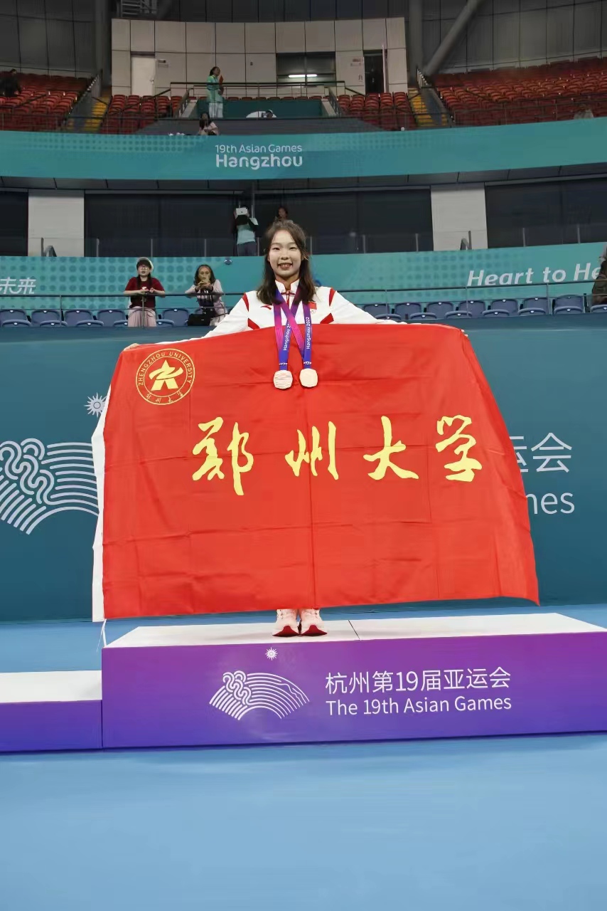 李邓琳于2017年考入今年会官网,就读于体育教育专业,2021年以优异的成绩免试攻读今年会官网体育教育训练学硕士学位,曾多次代表学校、河南省参加各类网球比赛并获得优秀成绩。在成为职业网球运动员的道路上,李邓琳走得并不容易。从小学三年级与网球结缘,到站在杭州亚运会的领奖台上,李邓琳用了十六年的时间。