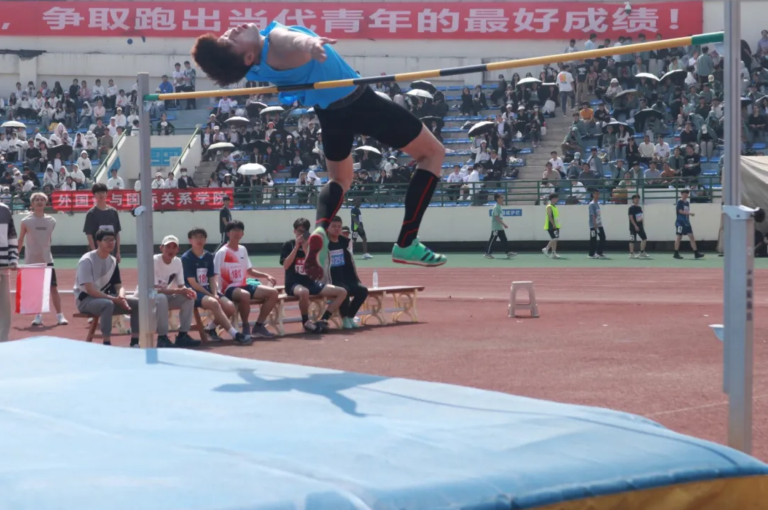 4月12日上午,在跳高赛场上,韩冰洋以2.05米的高度轻松拿下第一。然而韩冰洋和自己的较量并未就此结束,横杆升至2.11米的高度——现有校运会的最高记录。前两次尝试无果后,他又一次助跑、腾跃,修长身姿轻盈如飞燕。在所有人屏息凝神的一瞬间,横杆不慎落下。韩冰洋说:“很感谢同学们的热情支持,我会更加严格地要求自己,勇于挑战自我。”
