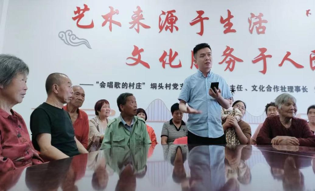 在旅游业快速发展、产业蒸蒸日上的同时,董艺文因地制宜,在垌头村创立了合唱团,并以传统文化为主要内容不断发展、壮大合唱团。回忆起创办合唱团的往事,董艺文说道:“我们创立了全国第一个农民合唱团,合唱团的故事三次登上《人民日报》,两次头版,六上央视,被誉为‘会唱歌的村庄’。那时我便深深意识到,传统文化要积极创新,转化为产业,才能实现乡村振兴。”在文化强村的探索中,董艺文提出了“通过文化引领乡村振兴的道路”。他告诉乡亲们:“从前我们会唱歌,现在我们要发展成产业!”