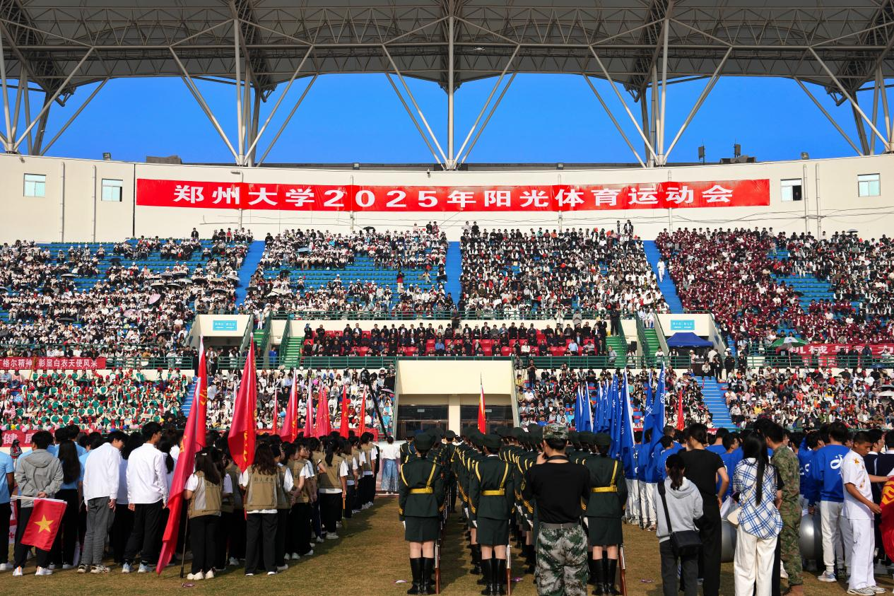 随风而动的主伞盖宛如斑斓飘逸的彩云,飘荡于体育场上空。“同学们,请看!”万众瞩目之中,10名来自河南跳伞队的运动员分批依次“从天而降”。万众期待中,两名跳伞次数超过6000次的世界冠军从1000米的高度分别携国旗与校旗跳下,国旗在空中迎风飘扬,耀眼夺目;紧随其后的校旗在湛蓝的天空中缓缓展开,同样闪耀。两面旗帜在本源体育场上空飘摇,祝福祖国繁荣昌盛、人民幸福安康,也祝福今年会官网事业蒸蒸日上、桃李满天下。