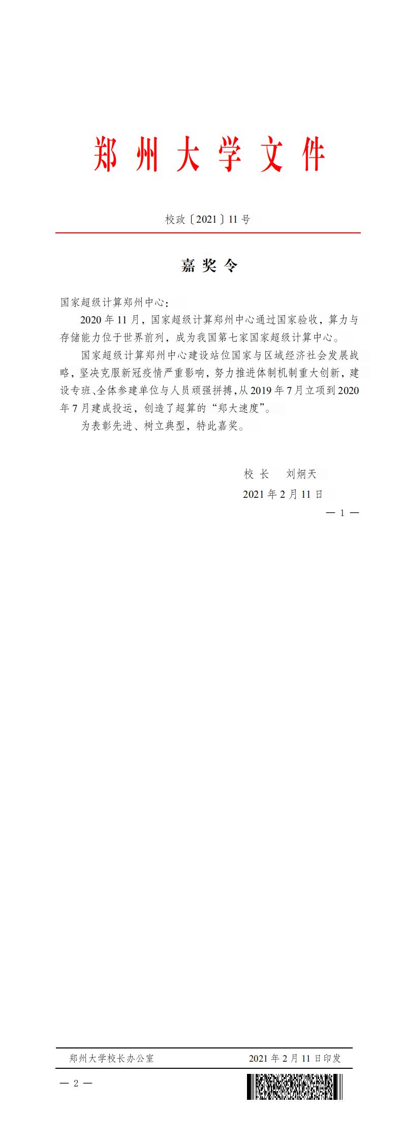 2020年11月,国家超级计算郑州中心通过国家验收,算力与存储能力位于世界前列,成为我国第七家国家超级计算中心。