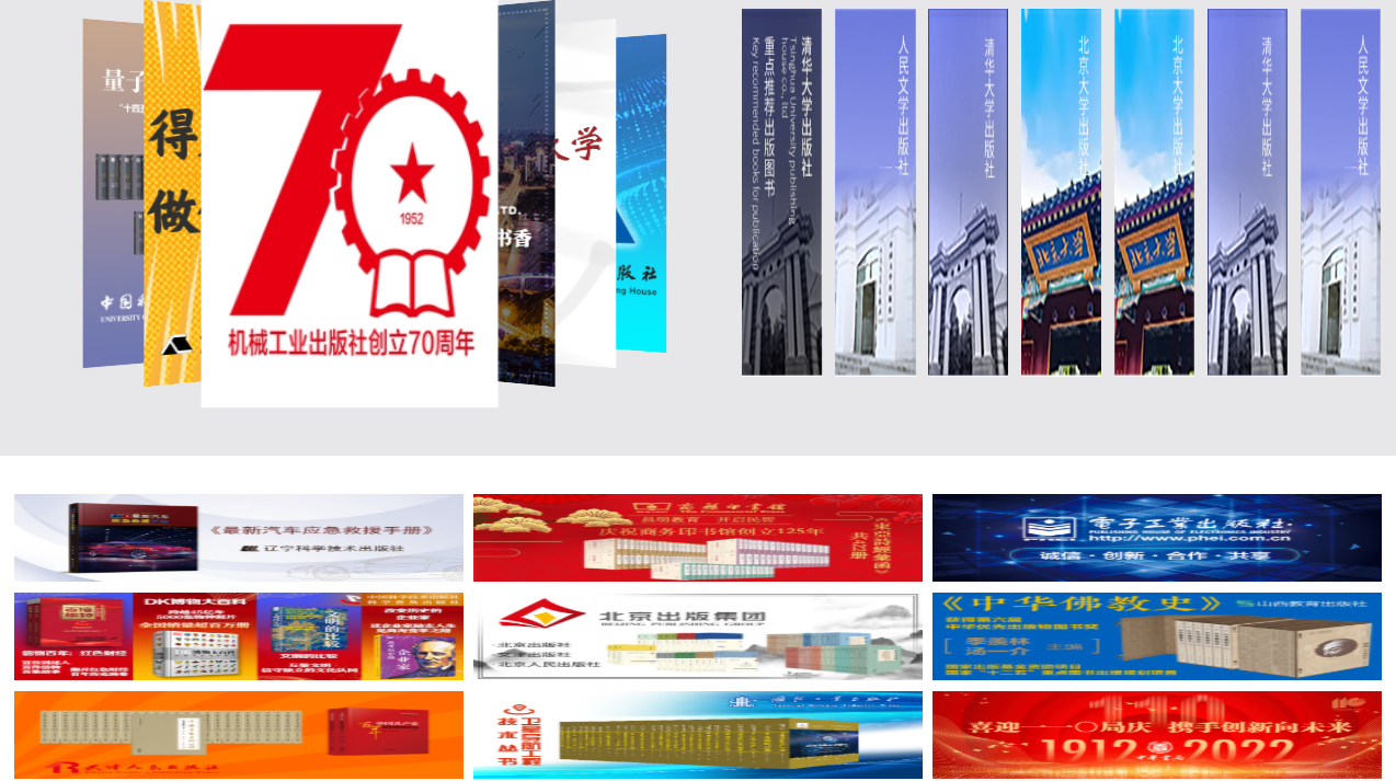 1.主会场:其左上角展示图书采会开幕式领导讲话及平台消息发布。其他板块主要展示重点出版社书目,直接点击出版社名称即可进入选书界面。
