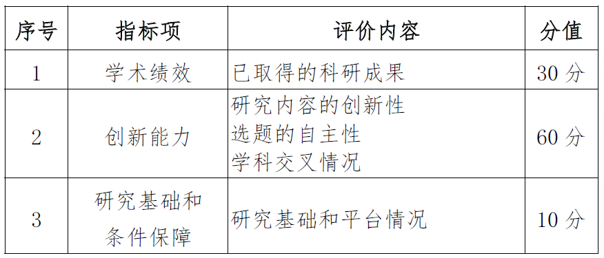 2.特别资助评审指标